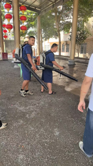 市应急管理局干部职工与村“两委”干部一同手持扫帚、铁锹深入房前屋后、社区楼道、市场周边,清理盆罐积水、清扫堆积落叶、搬运废弃杂物,针对积水处、植被密集区等蚊虫易孳生地,集中开展消杀,从源头切断蚊虫孳生链,用实际行动筑牢基层防控屏障。