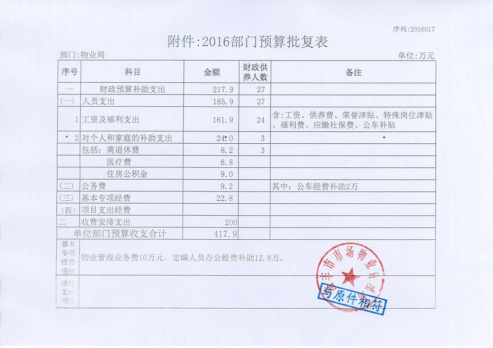 市场物业管理局预算表