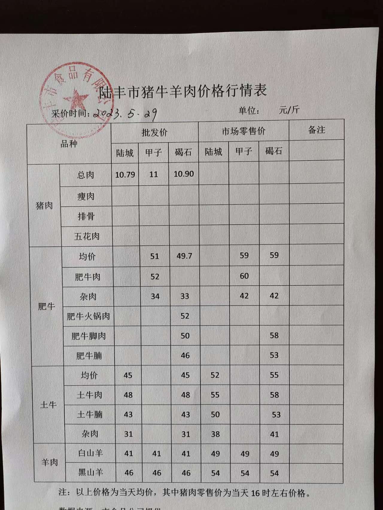 苹果直播 猪牛羊肉价格行情表