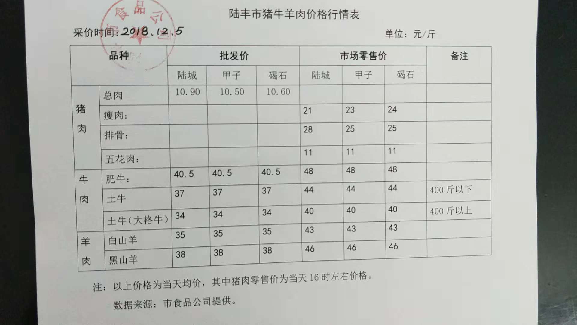 苹果直播 猪牛羊肉价格行情表(2018年12月5日)