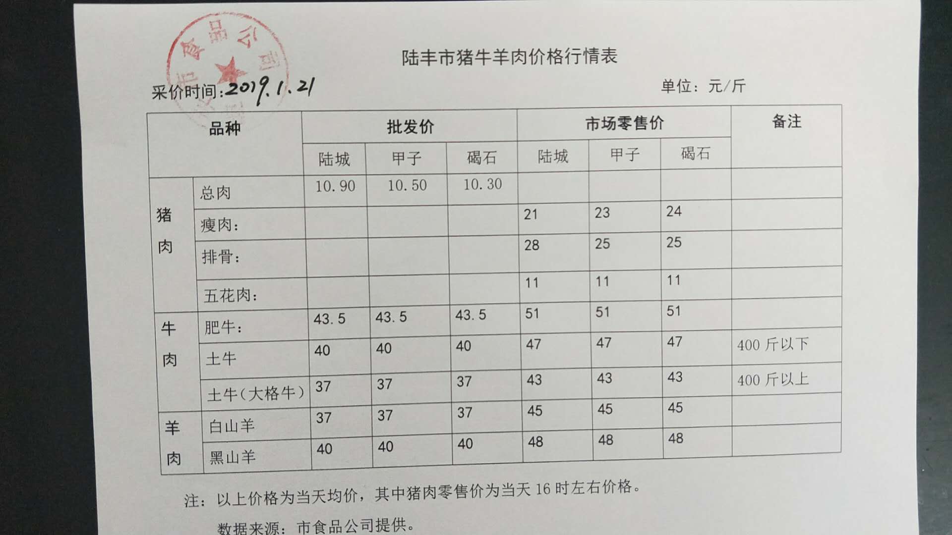 苹果直播 猪牛羊肉价格行情表(2019年1月21日)