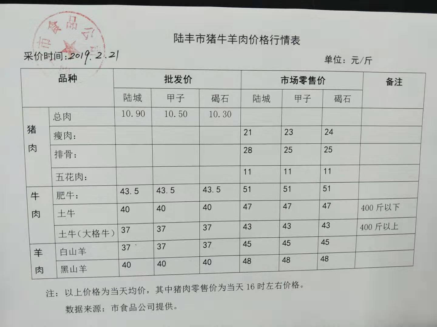 苹果直播 猪牛羊肉价格行情表(2019年2月21日)
