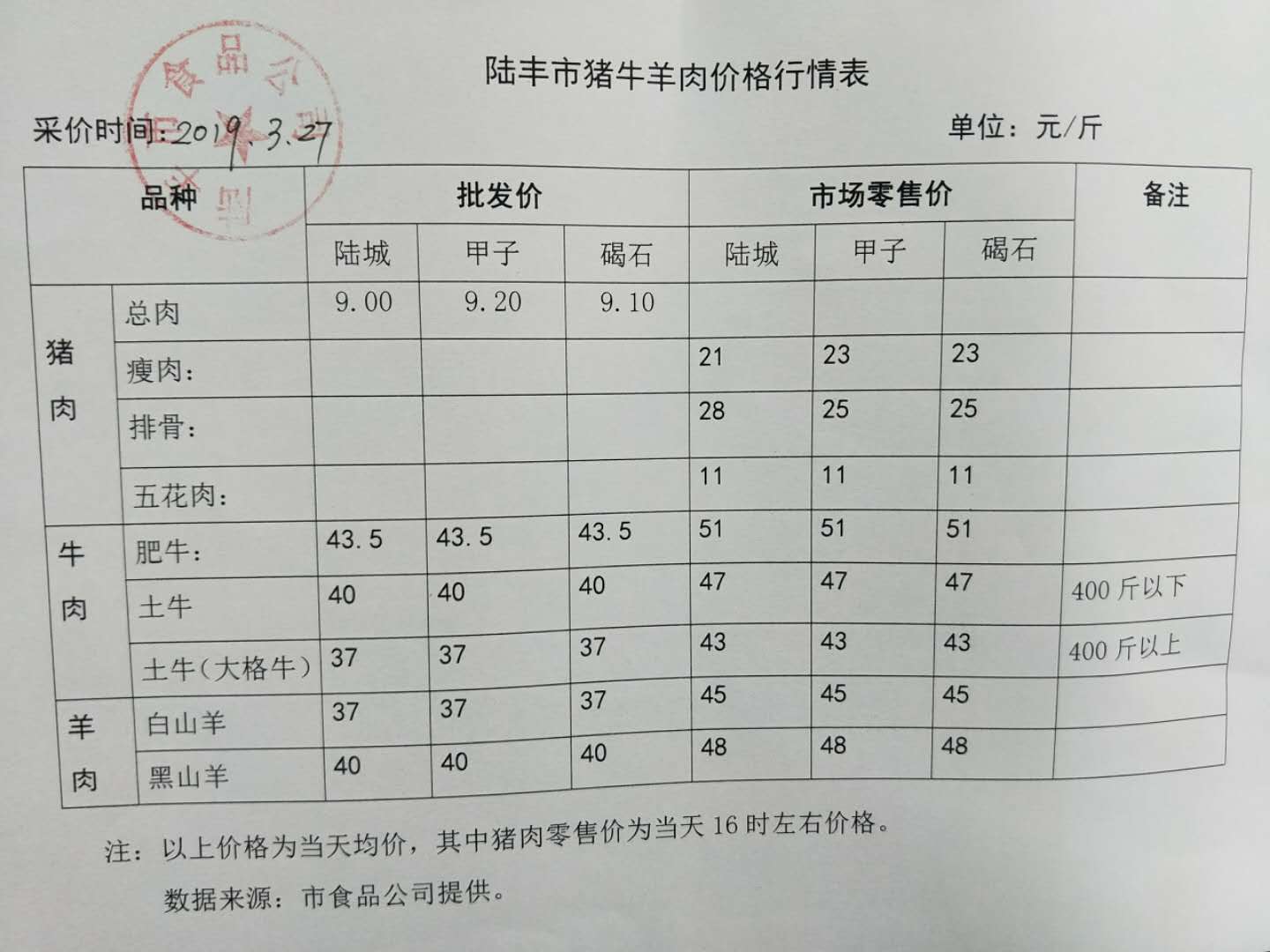 苹果直播 猪牛羊肉价格行情表(3月27日)