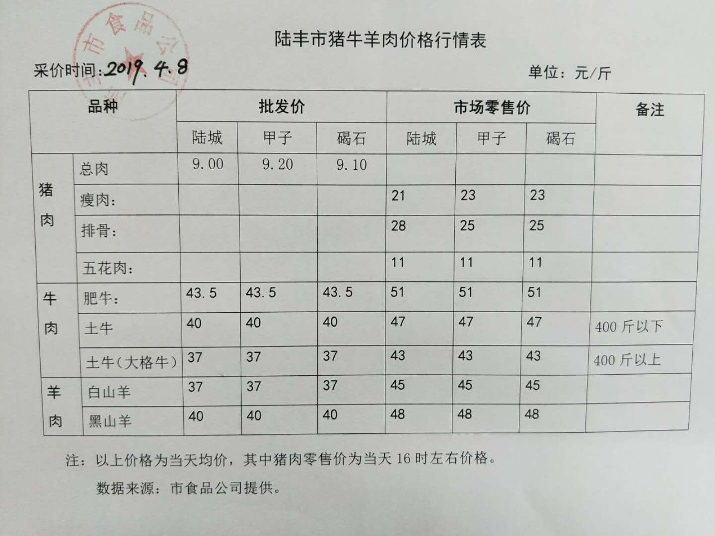 苹果直播 猪牛羊肉价格行情表(2019年4月8日)