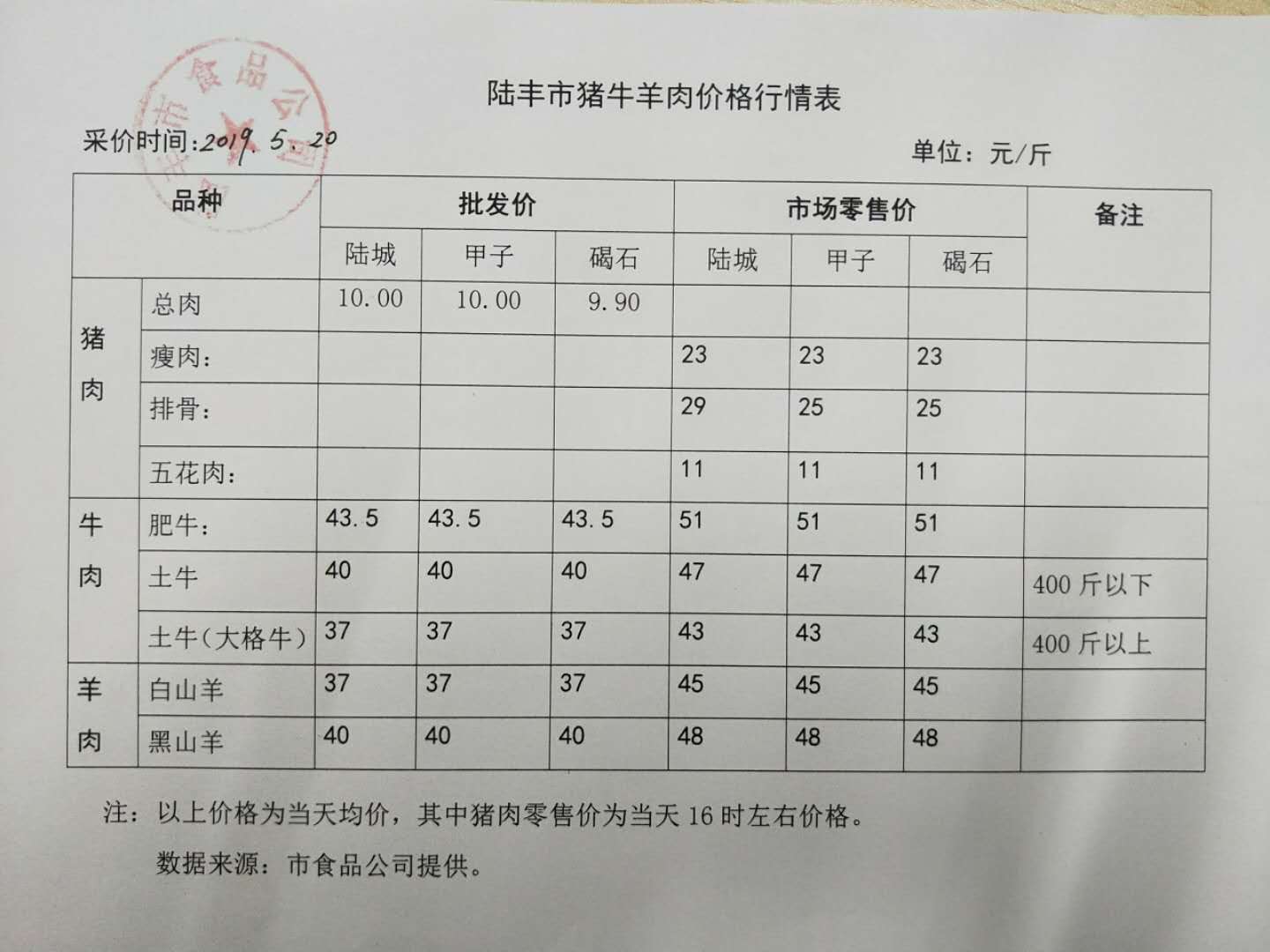 苹果直播 猪牛羊肉价格行情表(2019年5月20日)
