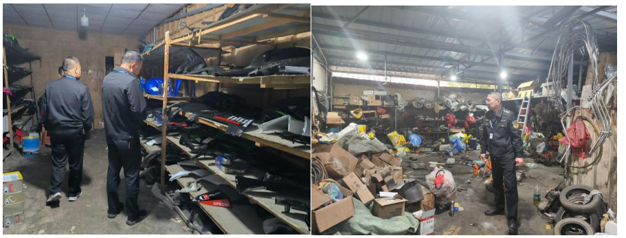 通过前期摸排,我局联合碣北派出所,在苹果直播 碣石镇戴厝村委许厝村,捣毁非法组拼装摩托车窝点1个,非法加工假冒商标标志摩托车配件窝点1个。现场查获半成品摩托车3辆,报废摩托车2截,假冒品牌摩托车外壳一批,控制现场当事人2人。