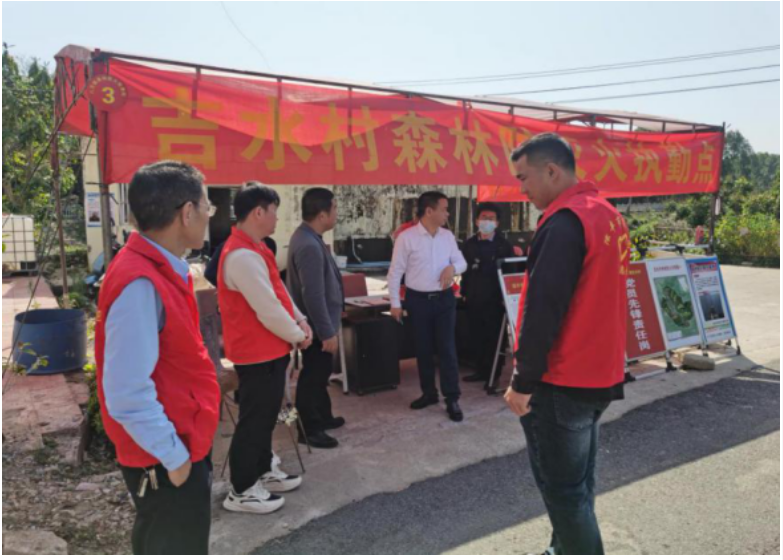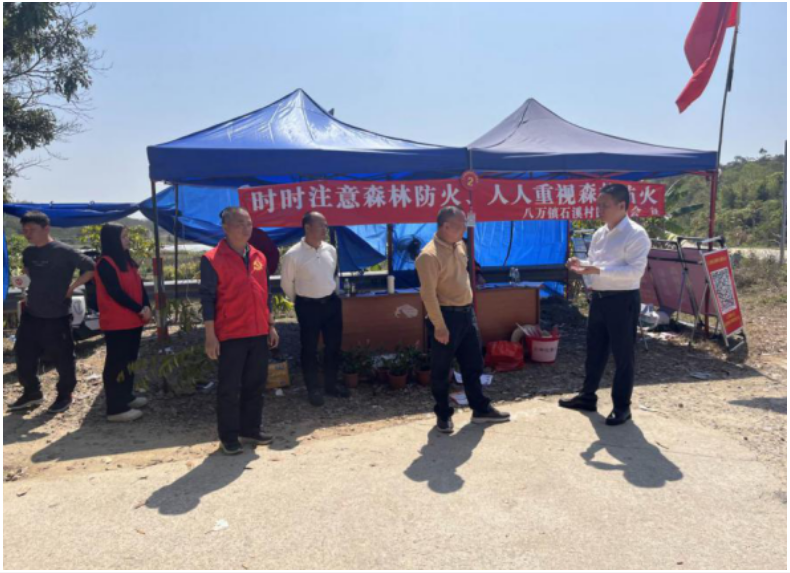 清明节期间为切实抓好协助持驻镇森林防火工作,保障人民群众生命财产安全。3月23日,市市场监管局党组书记、局长黄海波带队前往协助挂驻的八万镇石溪点、秋冬尾与石溪交界点、吉水点三个森林防火执勤点进行实地督导,与镇、村干部一道打响森林防火“清明节战役”。