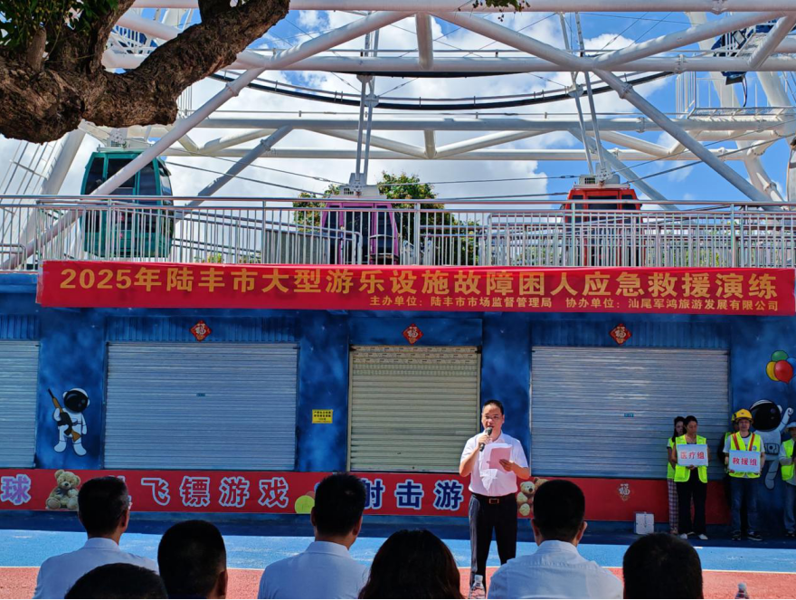 为贯彻落实市委市政府关于开展安全生产月活动的工作部署,围绕“人人讲安全 个个会应急——查找身边的隐患”这一主题,6月27日,苹果直播 市场监督管理局开展2025年“安全生产月”大型游乐设施故障困人应急救援演练暨“特种设备安全日”宣传活动。市政府办、市安委办、市文广旅体局、市应急管理局、市消防救援大队、城东街道办事处、东海街道办事处相关领导同志,省特种设备检测研究院汕尾检测院专家,全市大型游乐设施使用单位共计50余人现场观摩指导。