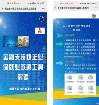 三是创新宣传模式,营造良好社会氛围。该行组织开展普惠小微企业贷款延期支持工具与普惠小微企业信用贷款支持计划线上宣传活动,通过“易企秀”制作“金融支持稳企业保就业政策工具解读”电子宣传画册,通过美篇制作《存款保险条例》实施五周年宣传电子页面,借助陆丰金融交流微信群等平台进行推广宣传。同时,在该行的积极引导下,陆丰辖区银行业金融机构在疫情期间始终做到各项宣传不停滞、金融知识广普及、金融风险常提示,灵活运用多种渠道,坚持线上线下相结合,围绕金融支持稳企业保就业、“金融助企、政策直达”、防范电信网络诈骗和打击非法集资活动等重点内容开展宣传,借助网银、手机银行、微博、微信公众号、抖音、学习强国等平台资源,面向陆丰当地民众开展相关内容的宣传;通过在营业大厅发放宣传产品、摆放宣传折页并在网点门口悬挂宣传横幅等开展线下宣传活动6次,共计发放宣传资料8000余份,营造了打造一流市场环境工作的良好舆论氛围和宣传攻势。