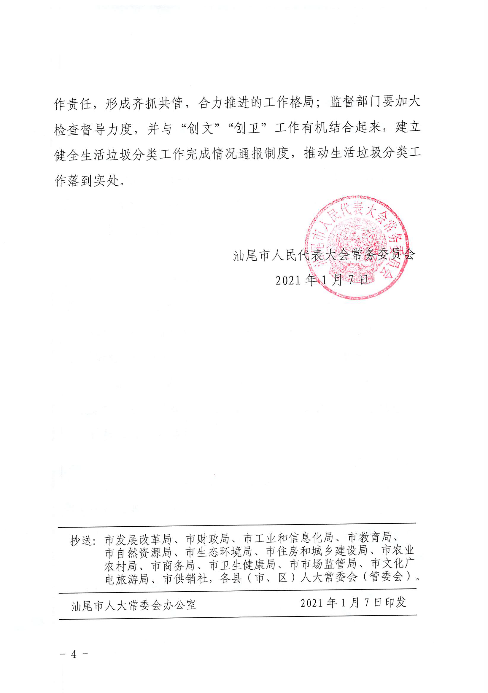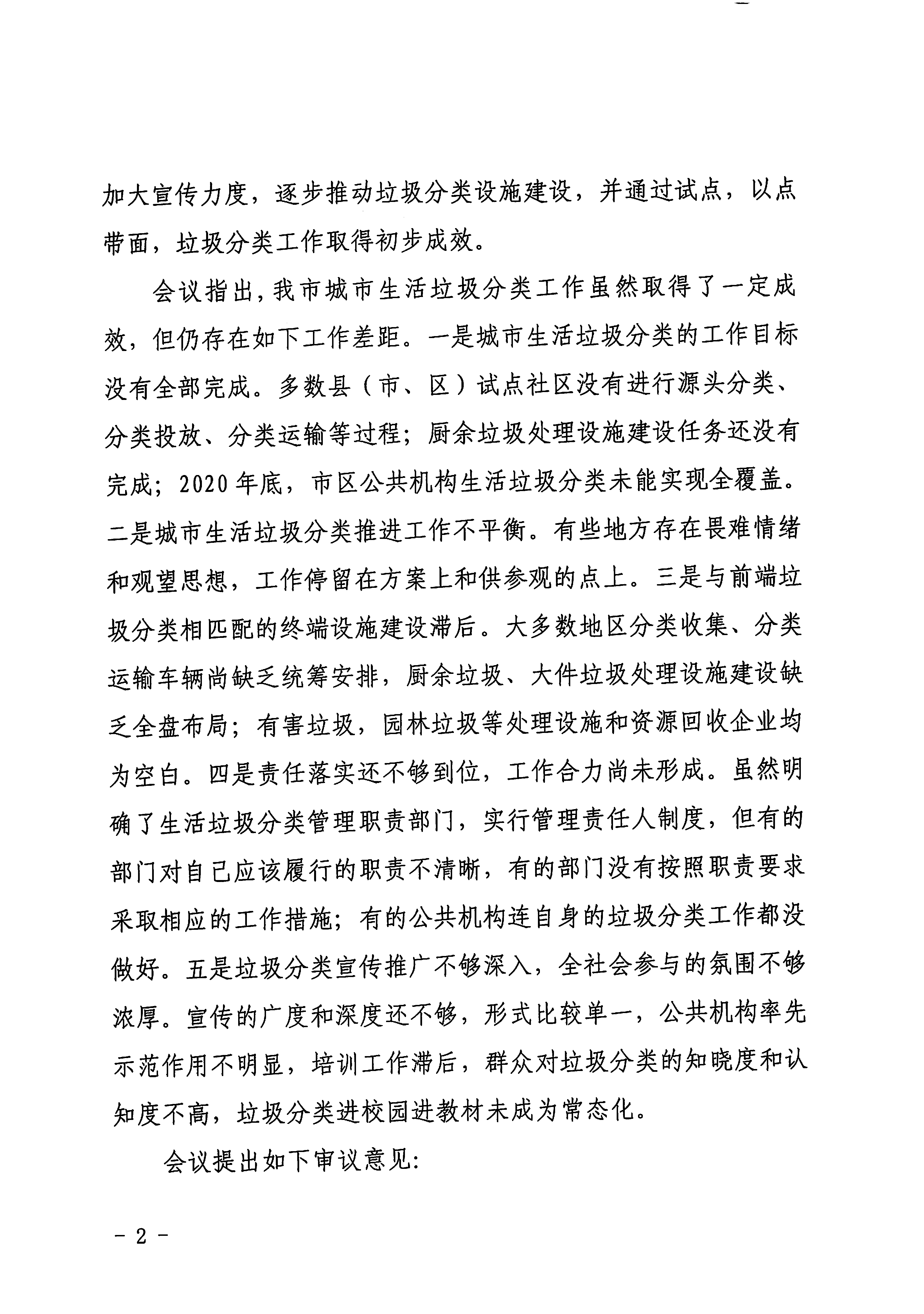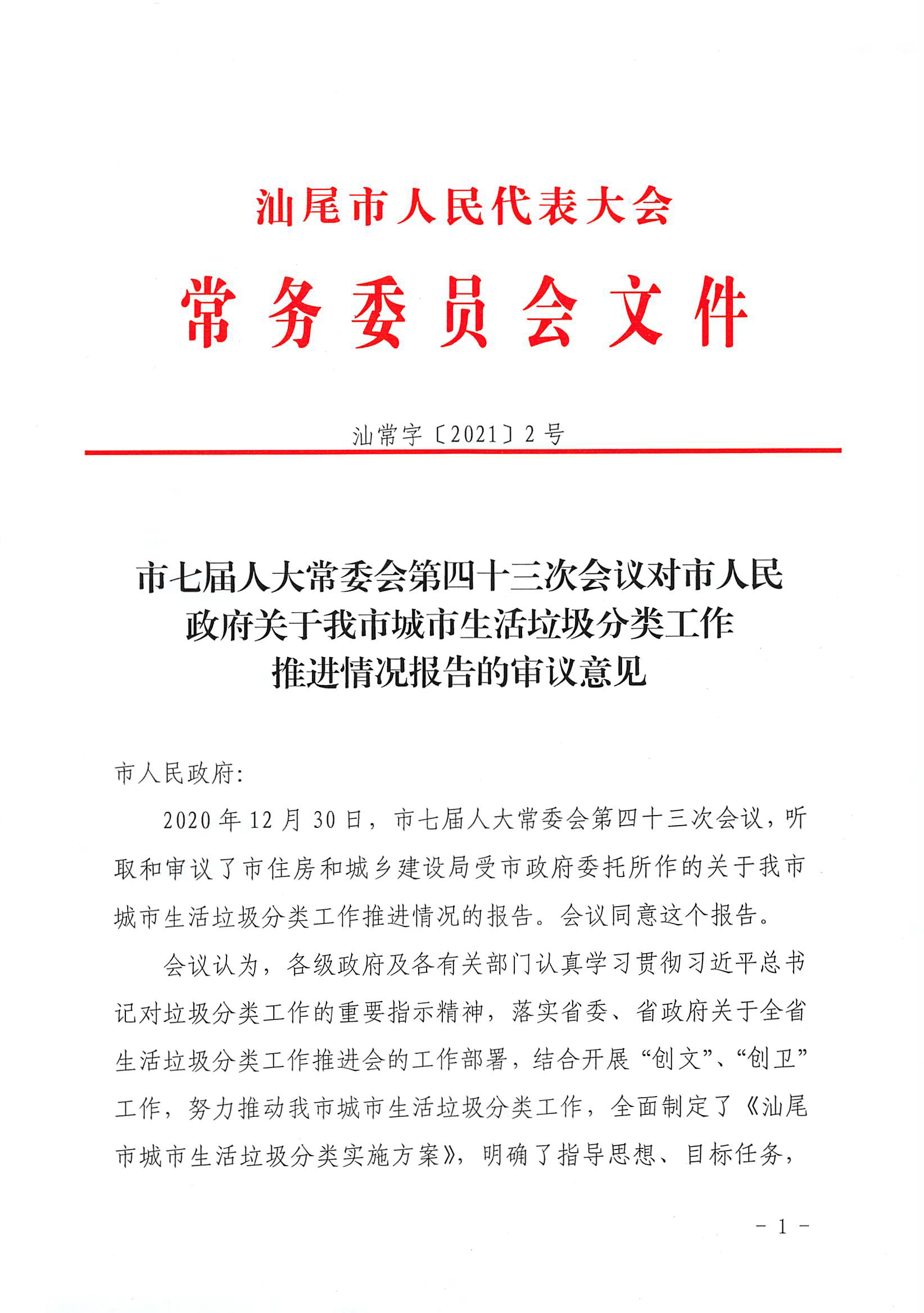 市七届人大常委会第四十三次会议对市人民政府关于我市城市生活垃圾分类工作推进情况报告的审议意见