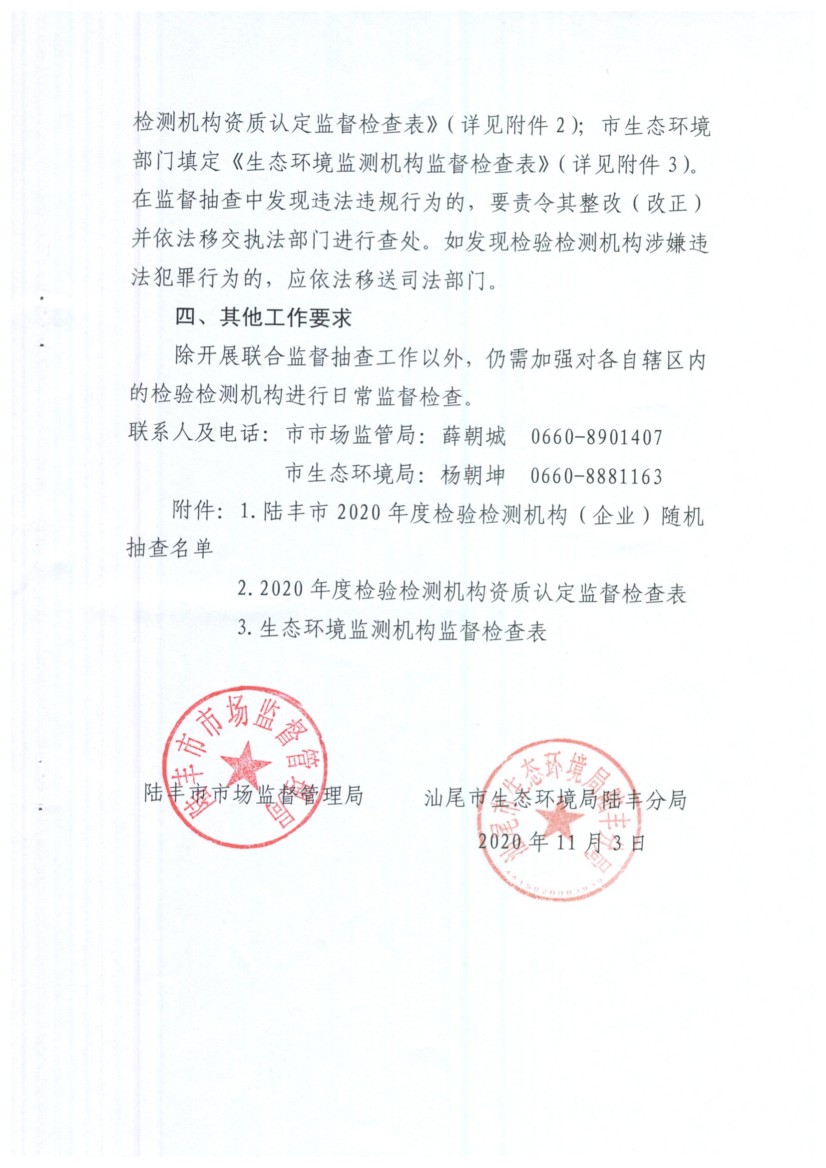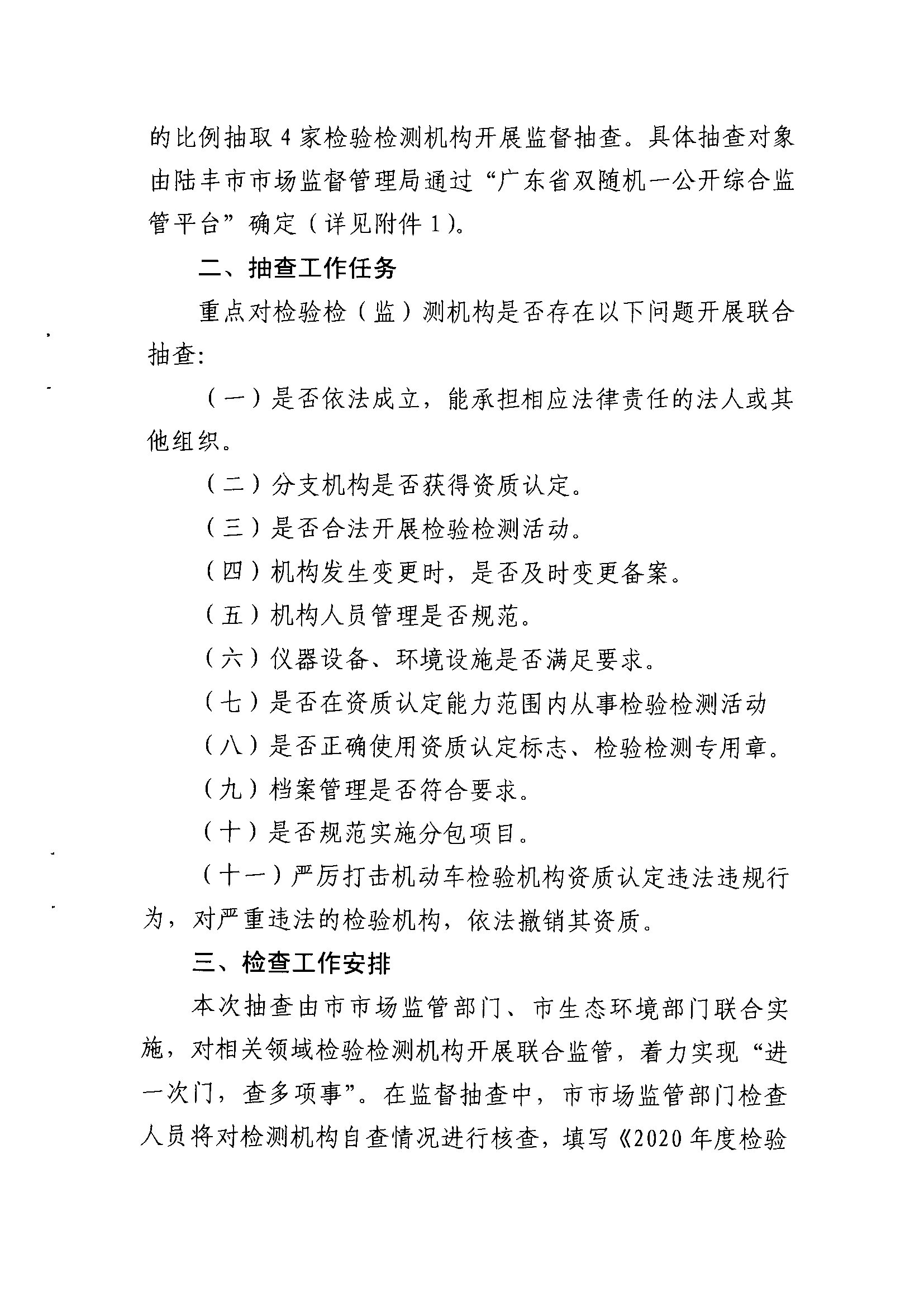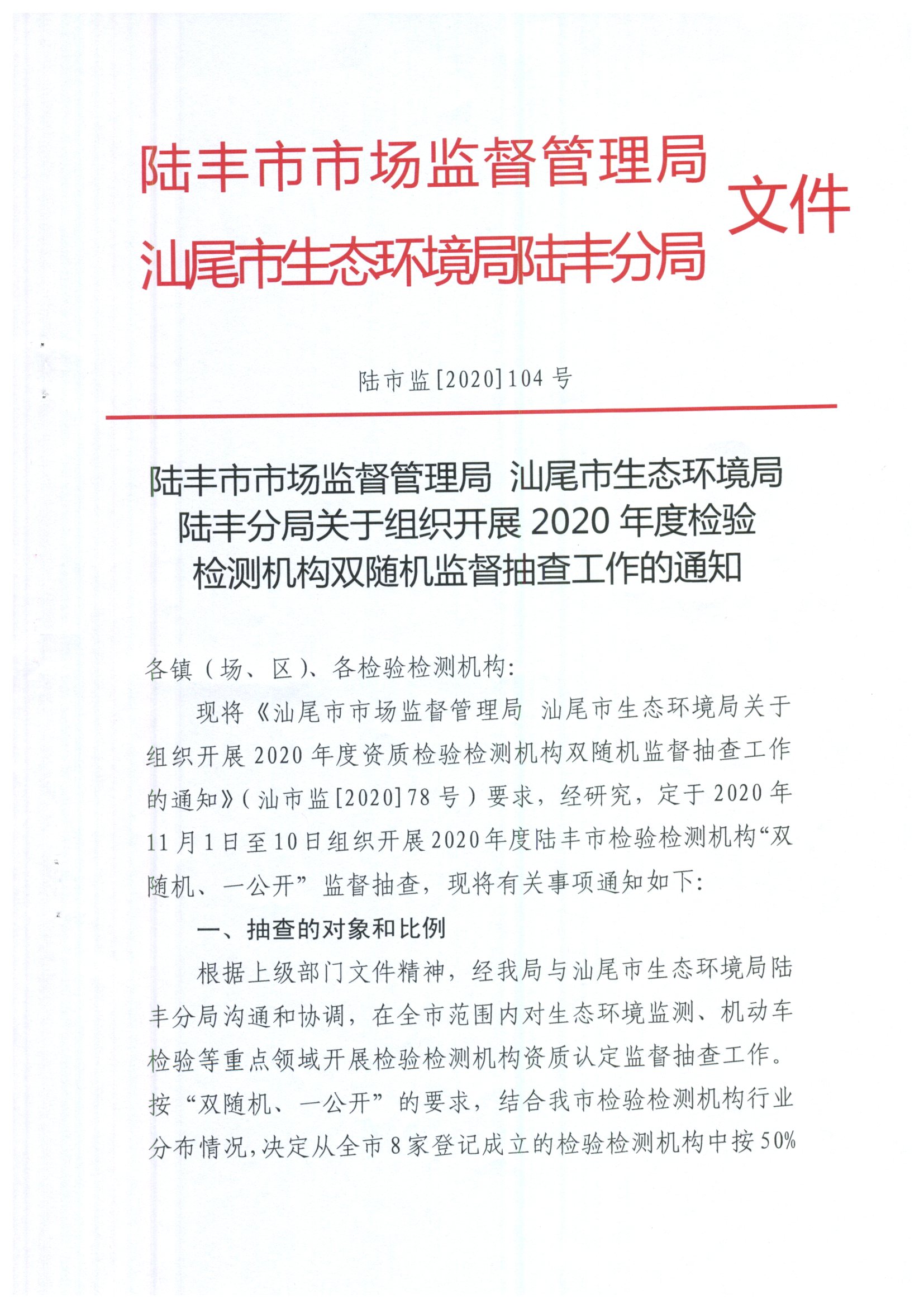 关于组织开展2020年度检验检测机构双随机监督抽查工作的通知