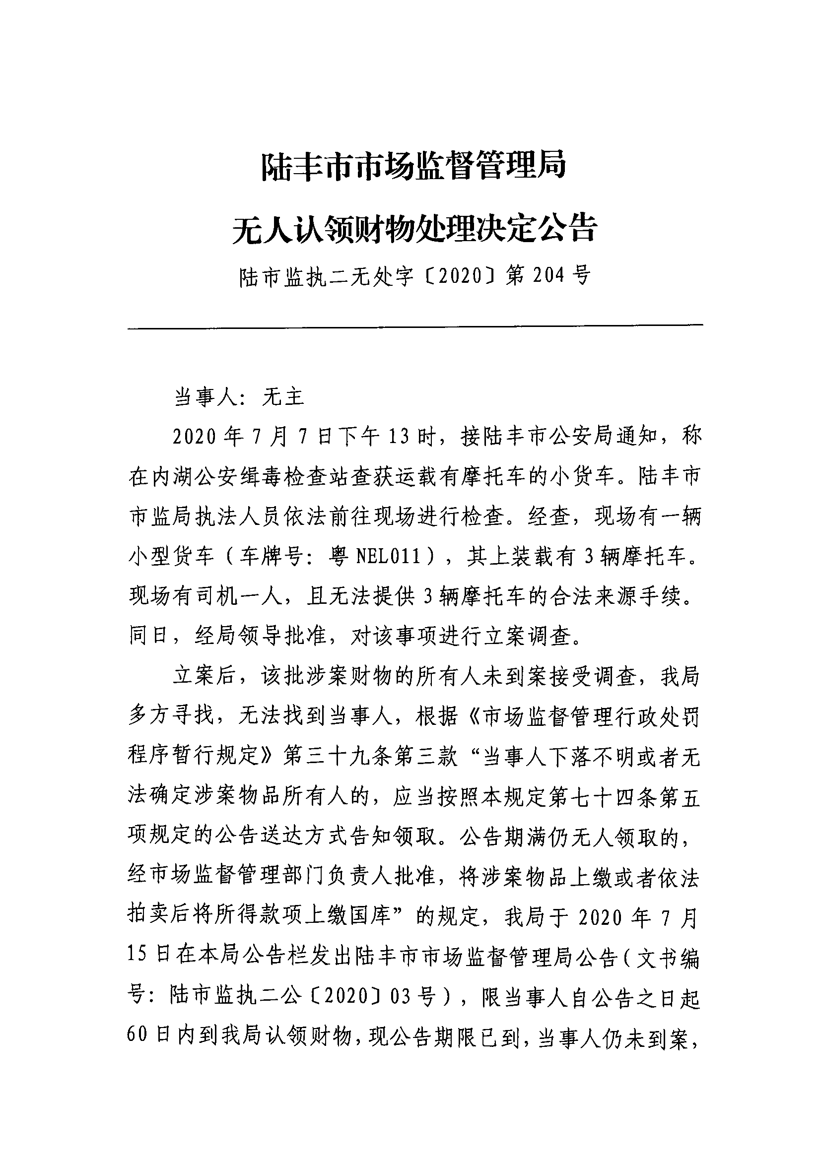 苹果直播 市场监督管理局无人认领财物处理决定公告