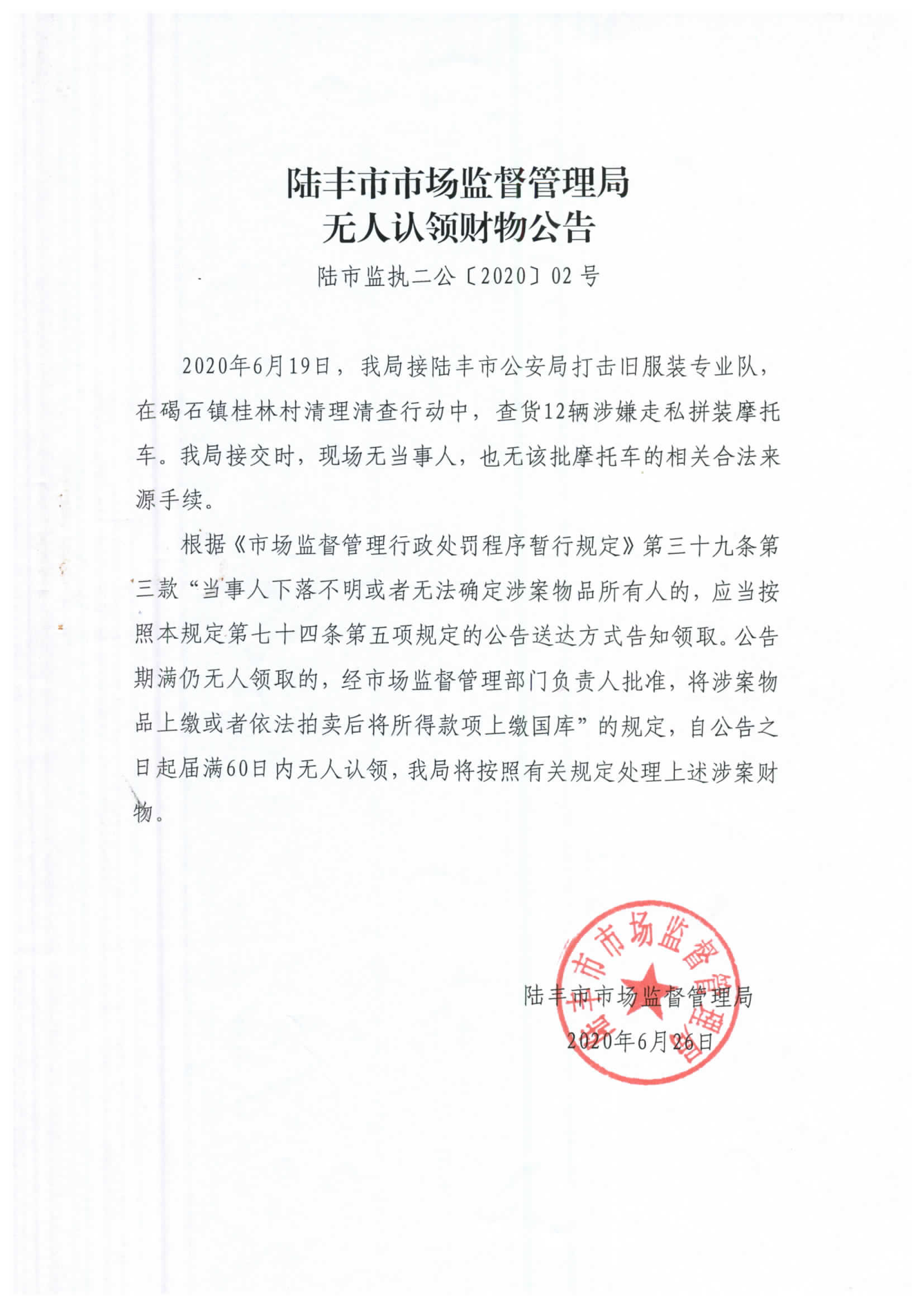 苹果直播 市场监督管理局无人认领财物公告