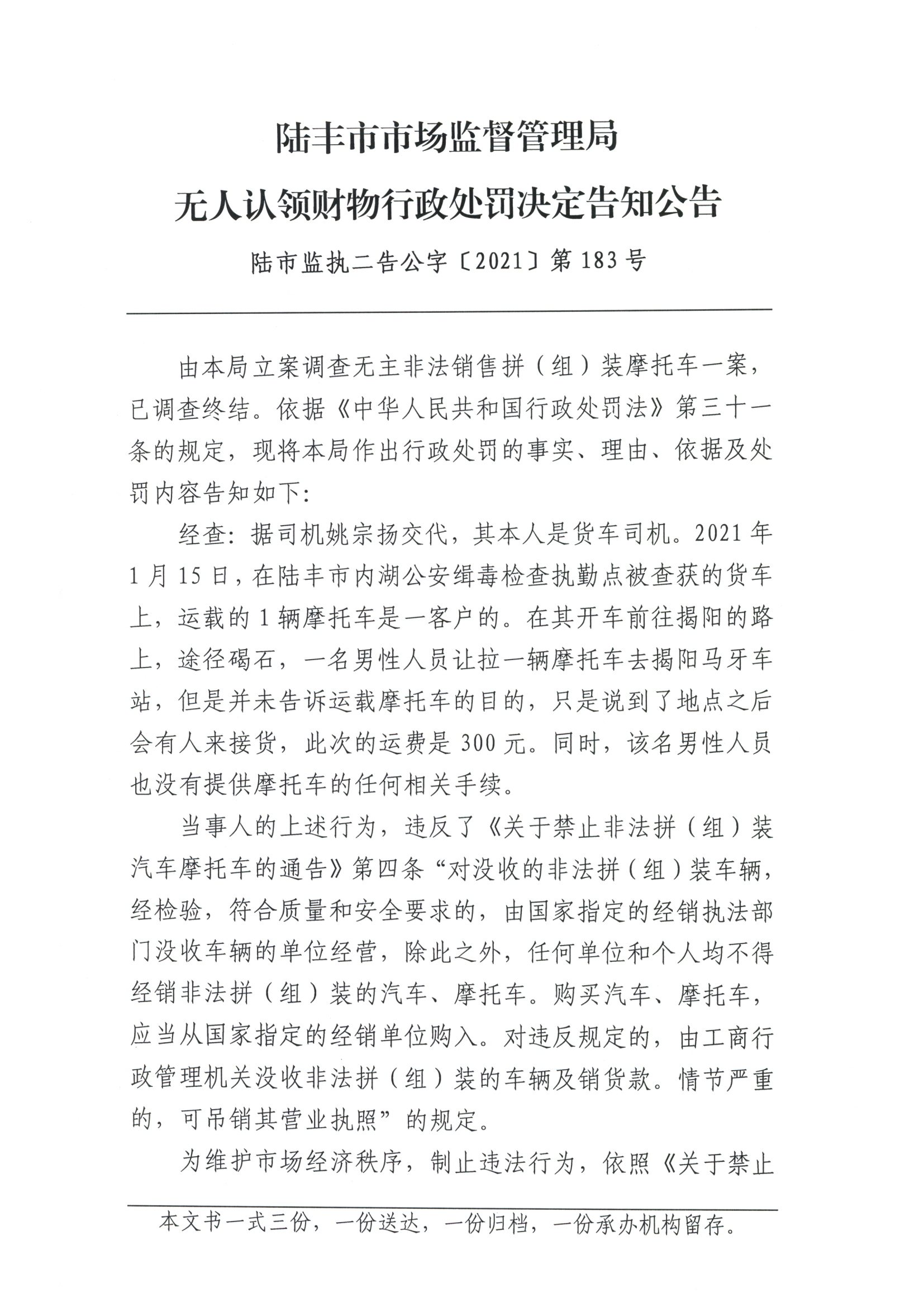 苹果直播 市场监督管理局无人认领财物行政处罚决定告知公告