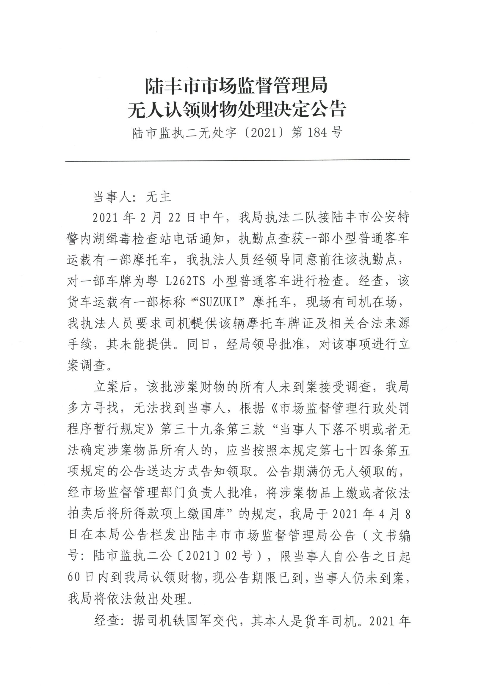 苹果直播 市场监督管理局无人认领财物处理决定公告