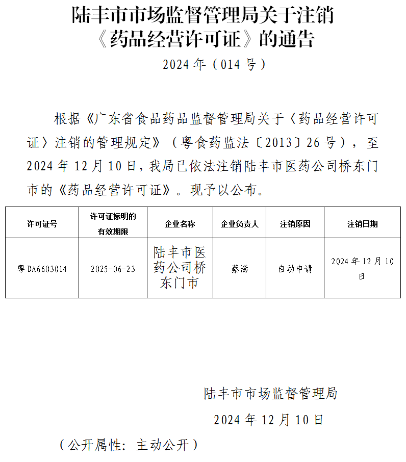 苹果直播 市场监督管理局关于注销《药品经营许可证》的通告