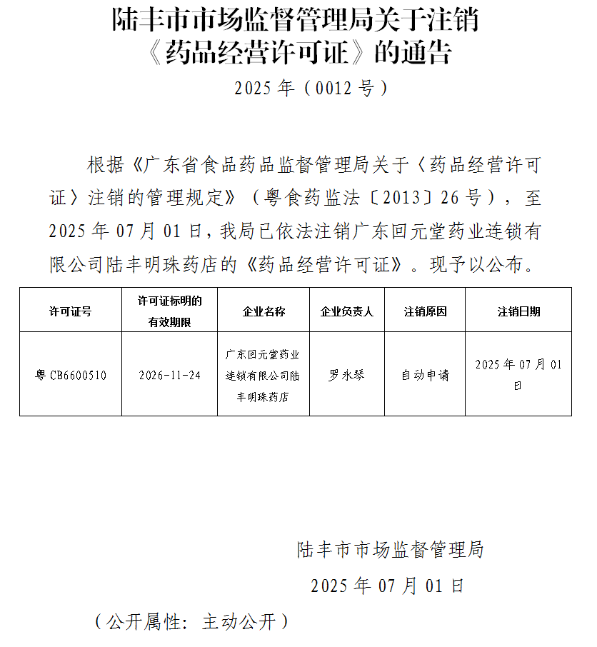 苹果直播 市场监督管理局关于注销《药品经营许可证》的通告