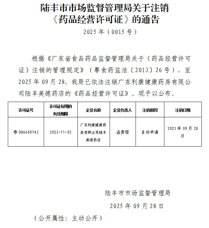 苹果直播 市场监督管理局关于注销《药品经营许可证》的通告