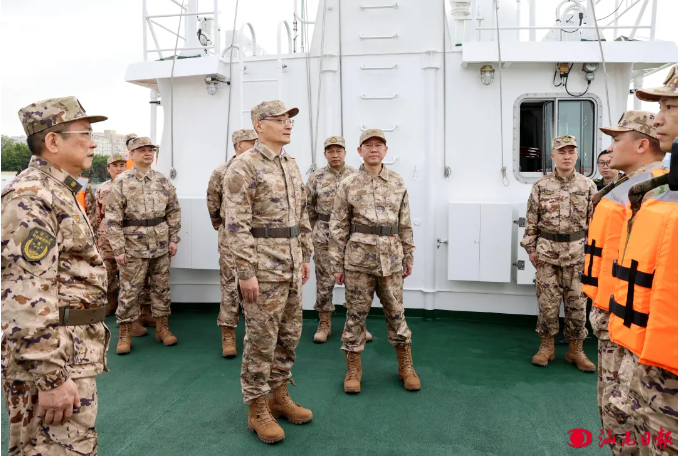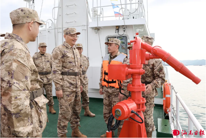 会后,市领导来到驻汕武警某部进行“军事日”活动,现场登上新入列武警某部舰艇,详细了解部队历史沿革和发展建设情况,认真观摩装备展示,感受部队的厚重底蕴、光荣传统和强军新貌。