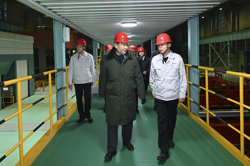 1月22日至24日,中共中央总书记、国家主席、中央军委主席习近平冒着严寒来到辽宁,看望慰问基层干部群众。这是23日下午,习近平在本溪市考察本钢板材冷轧总厂第三冷轧厂车间。新华社记者 谢环驰 摄