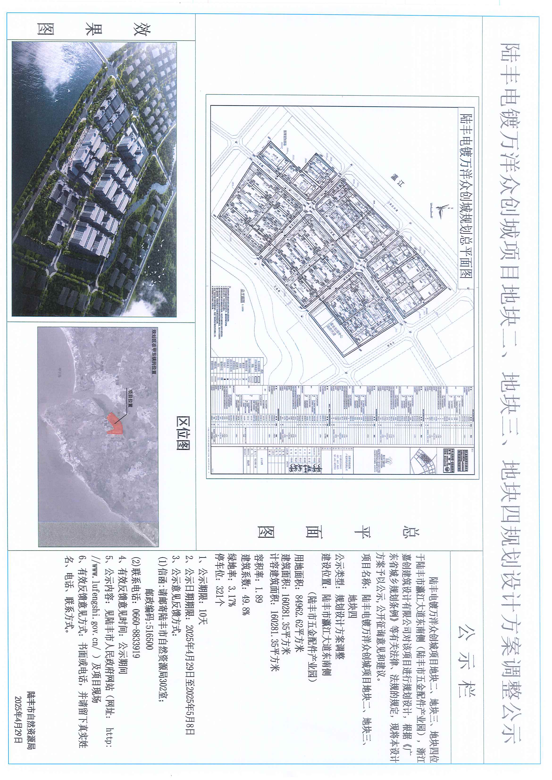 陆丰电镀万洋众创城项目地块二、地块三、地块四规划设计方案调整公示