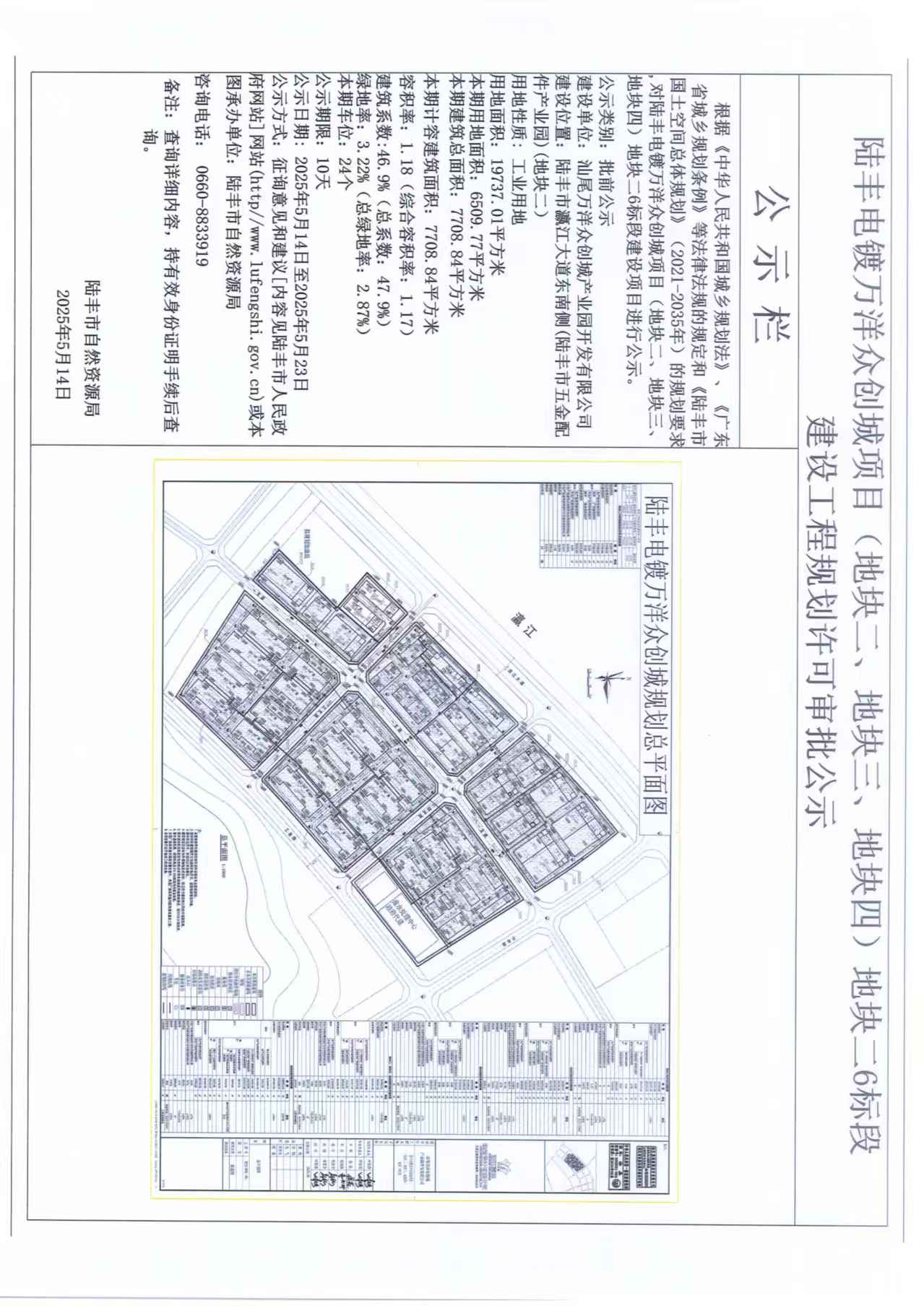 陆丰电镀万洋众创城项目(地块二、地块三、地块四)地块二6标段建设工程规划许可审批公示