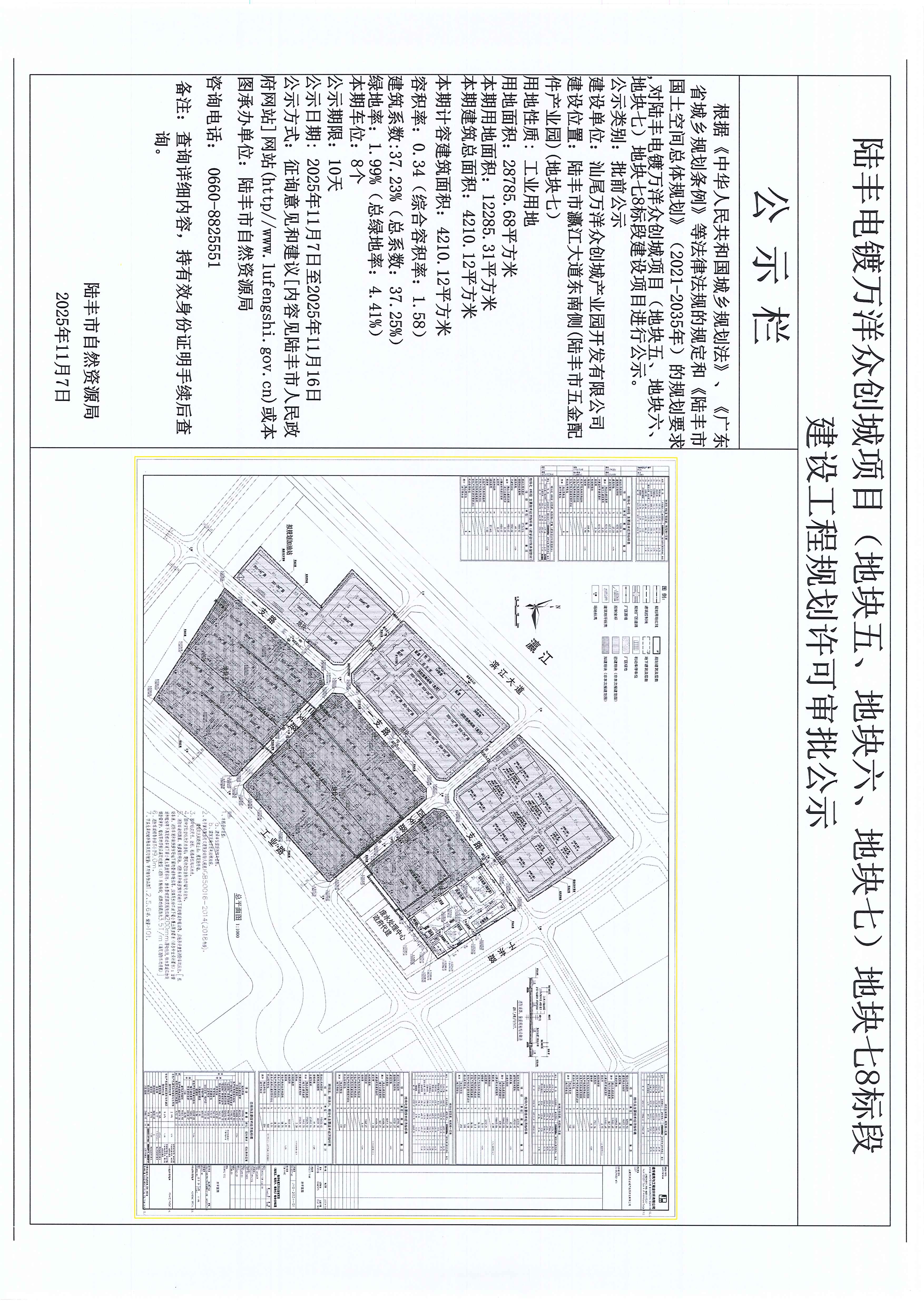 陆丰电镀万洋众创城项目(地块五、地块六、地块七)地块七8标段建设工程规划许可审批公示