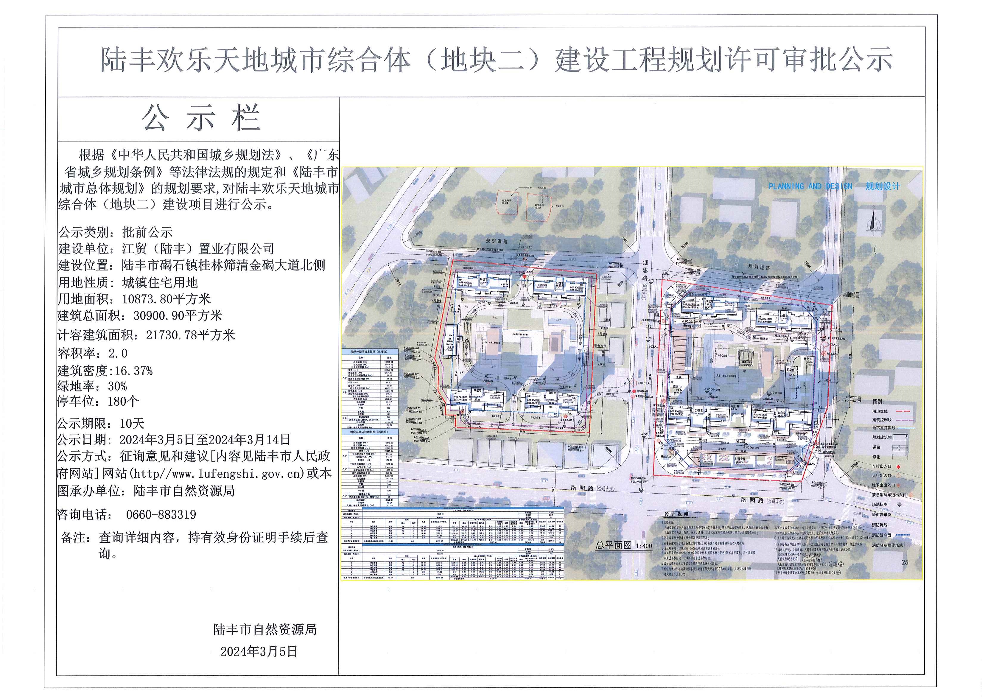 陆丰欢乐天地城市综合体(地块二)建设工程规划许可审批公示