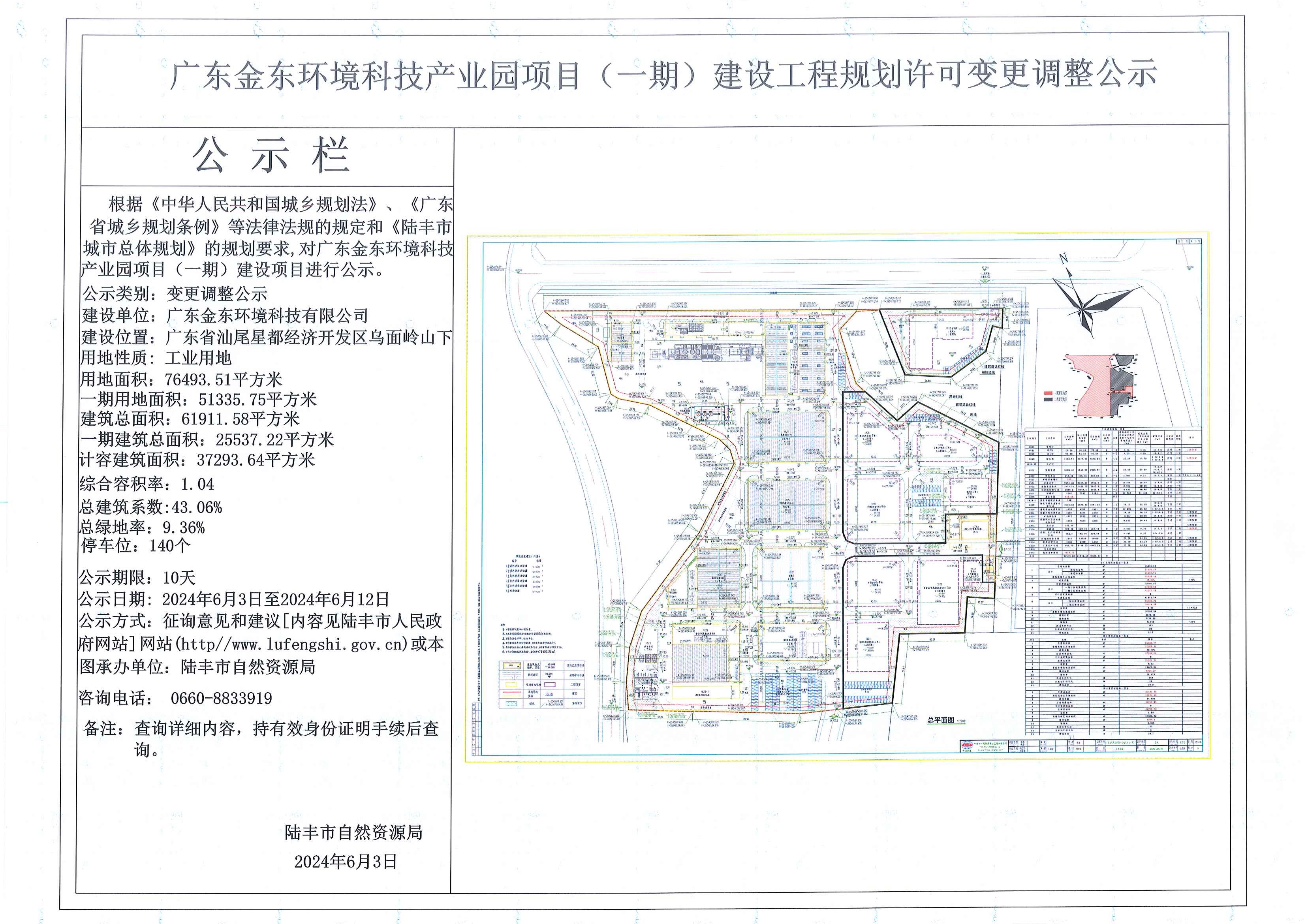 广东金东环境科技产业园项目(一期)建设工程规划许可变更调整公示