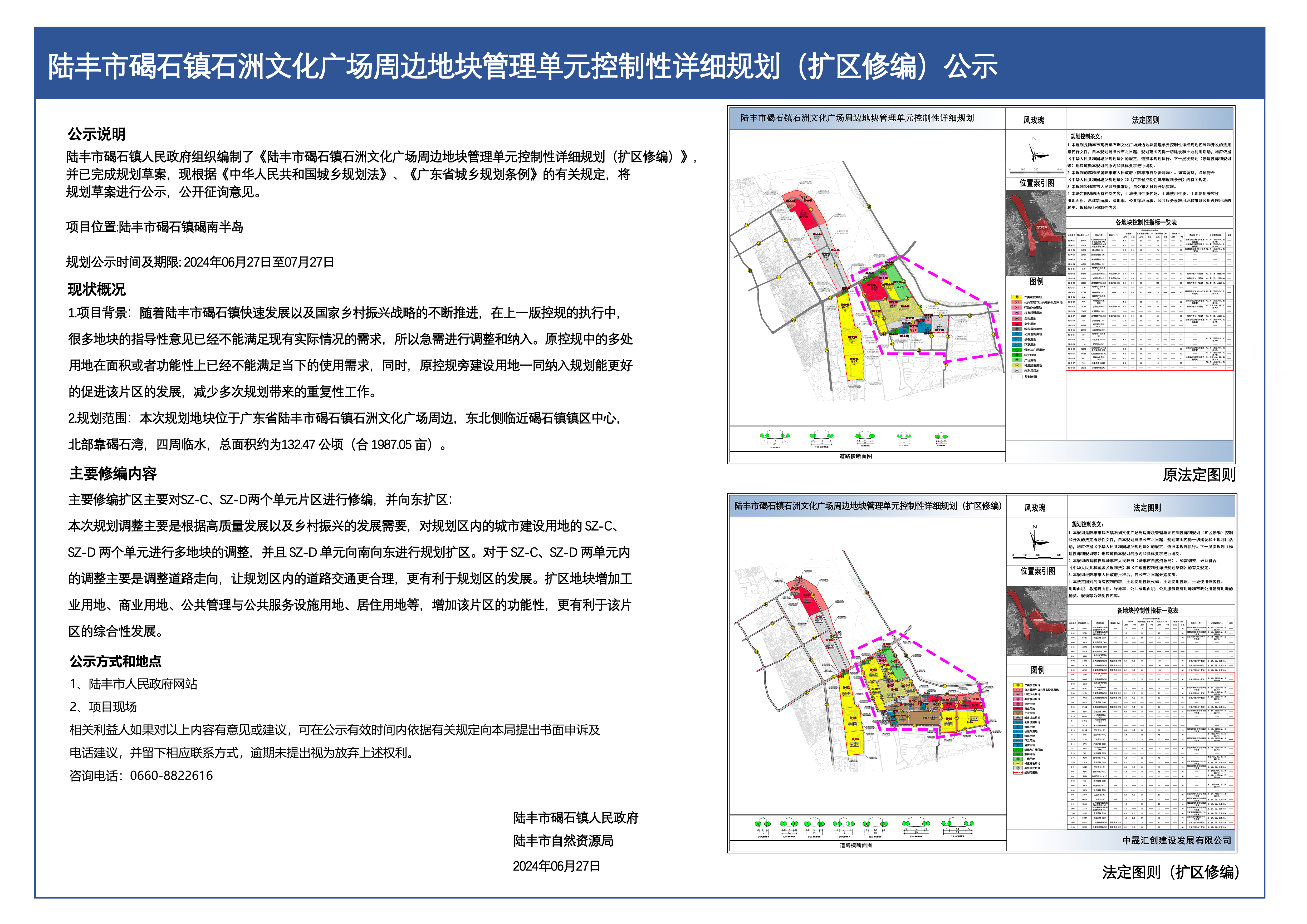 苹果直播 碣石镇石洲文化广场周边地块管理单元控制性详细规划(扩区修编)公示