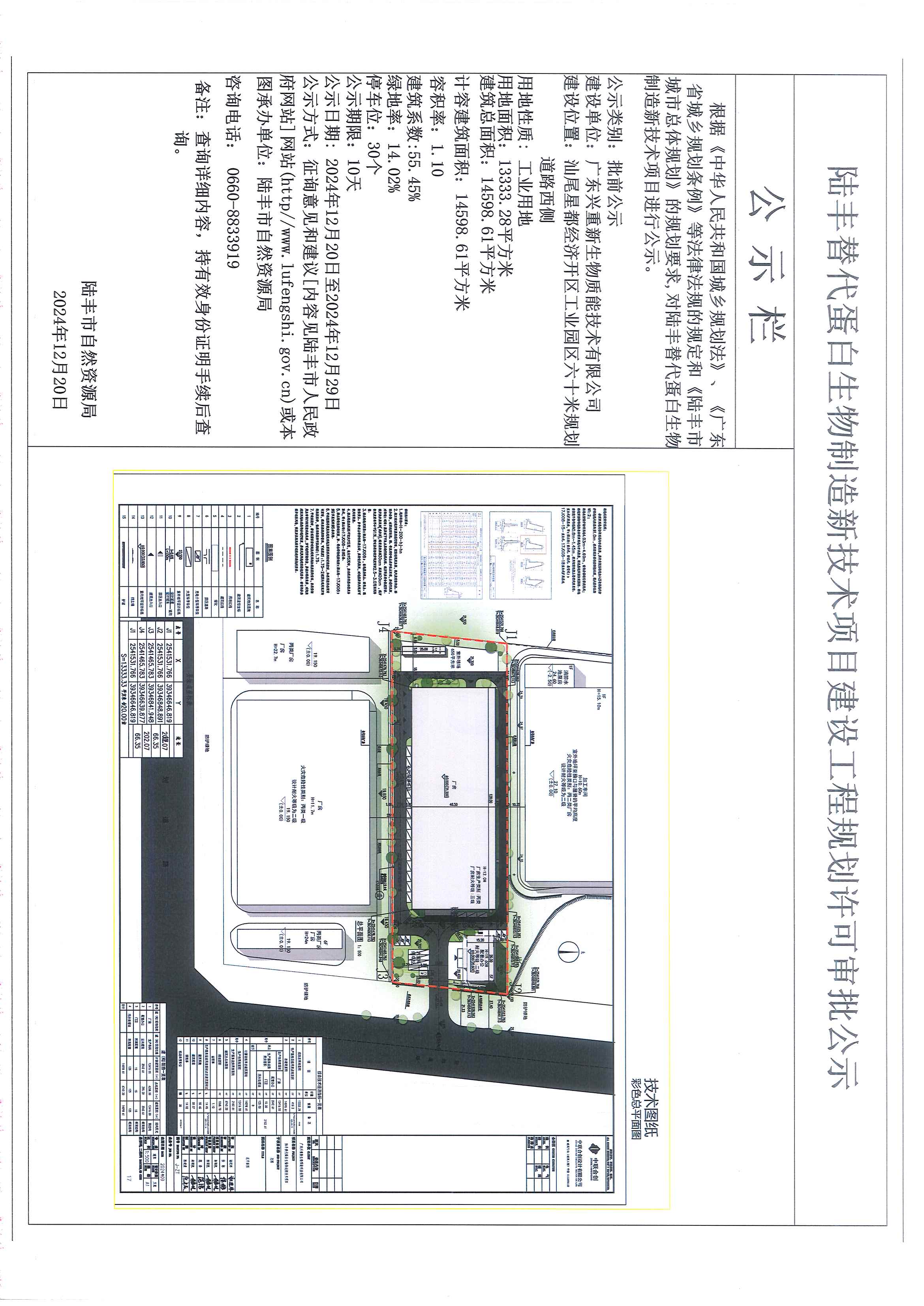 陆丰替代蛋白生物制造新技术项目建设工程规划许可审批公示