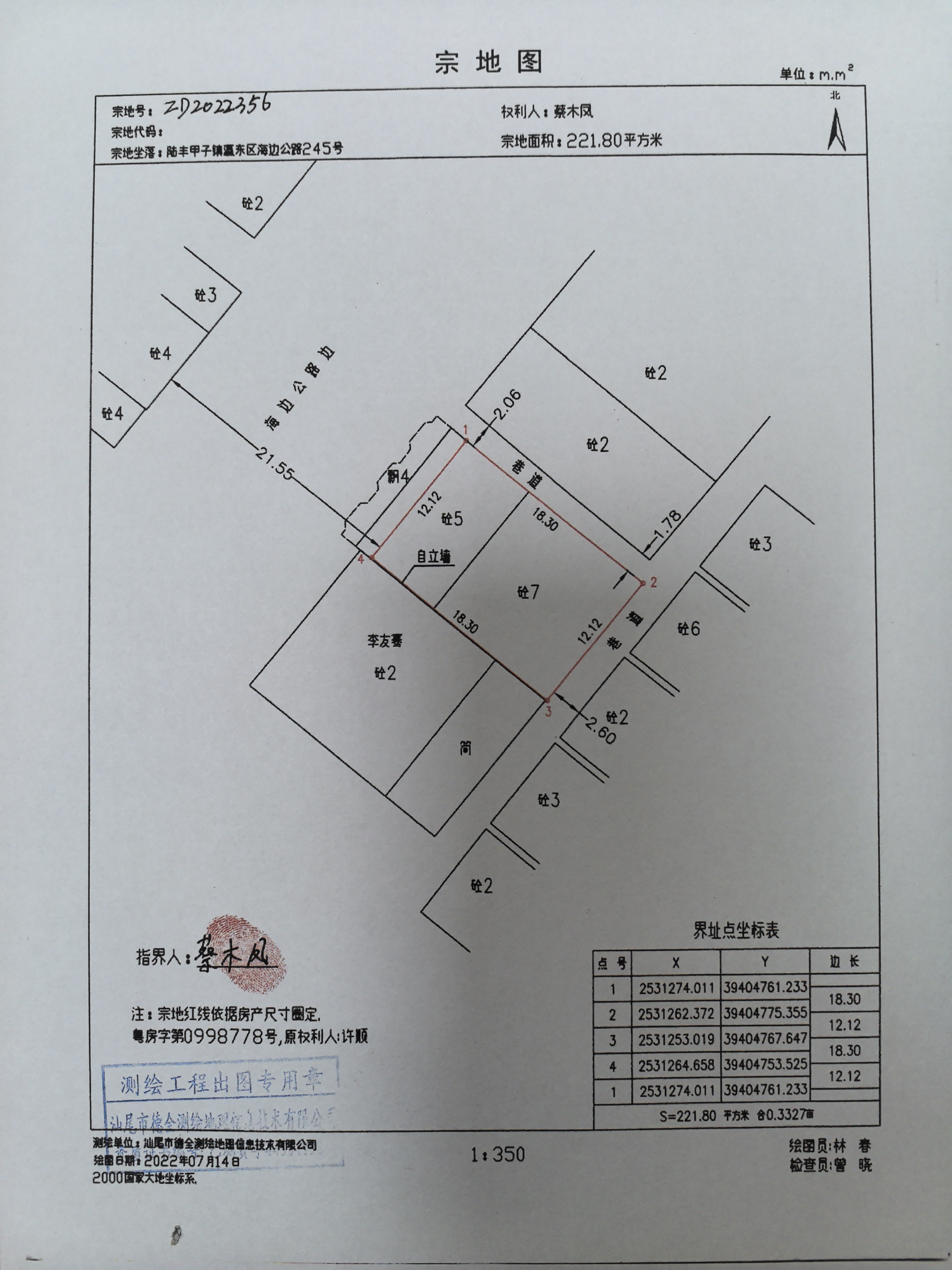蔡木凤拥有坐落于苹果直播 甲子镇瀛东区海边公路245号的房产,产权证号:粤(2022)苹果直播 不动产权第0004368号,宗地面积221.8平方米,房屋建筑面积282.04平方米。经查询历史登记档案,该宗地未取得相关土地权属证明材料。根据《汕尾市自然资源局关于印发<关于加快处理汕尾市市区不动产登记若干历史遗留问题的意见(试行)>的通知》(汕自然资〔2024〕458号),已办理房产登记手续但无土地权属来源的住宅项目,经权籍调查并于房屋现场、所在村(居)委及门户网站公告30日无争议后,由房屋权利人申请办理不动产登记……。现予以公告。