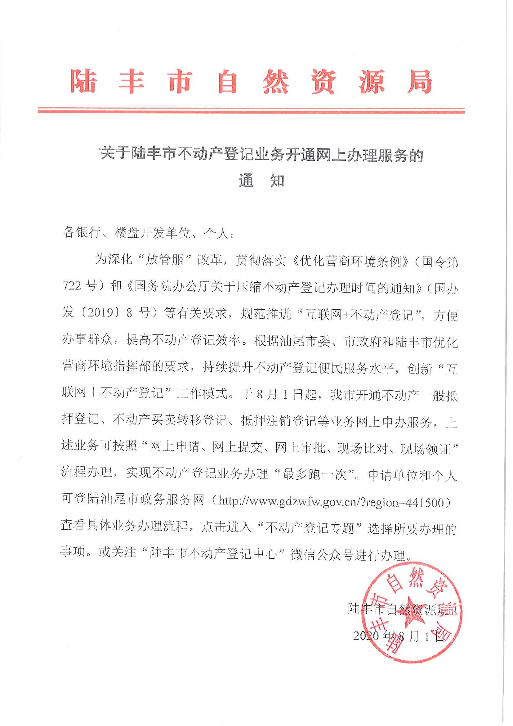 关于苹果直播 不动产登记业务开通网上办理服务的通知