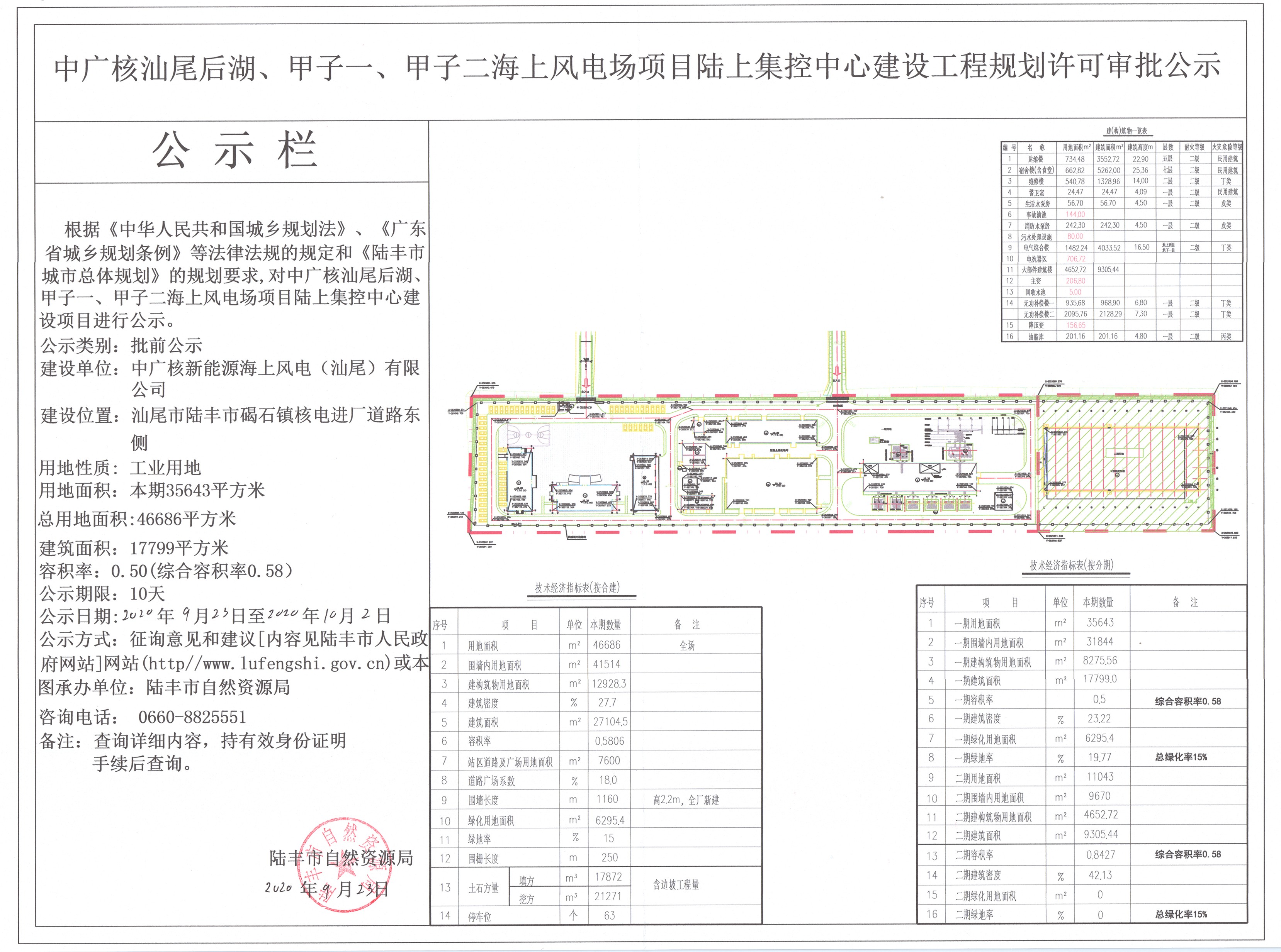 中广核汕尾后湖、甲子一、甲子二海上风电场项目陆上集控中心建设工程规划许可审批公示