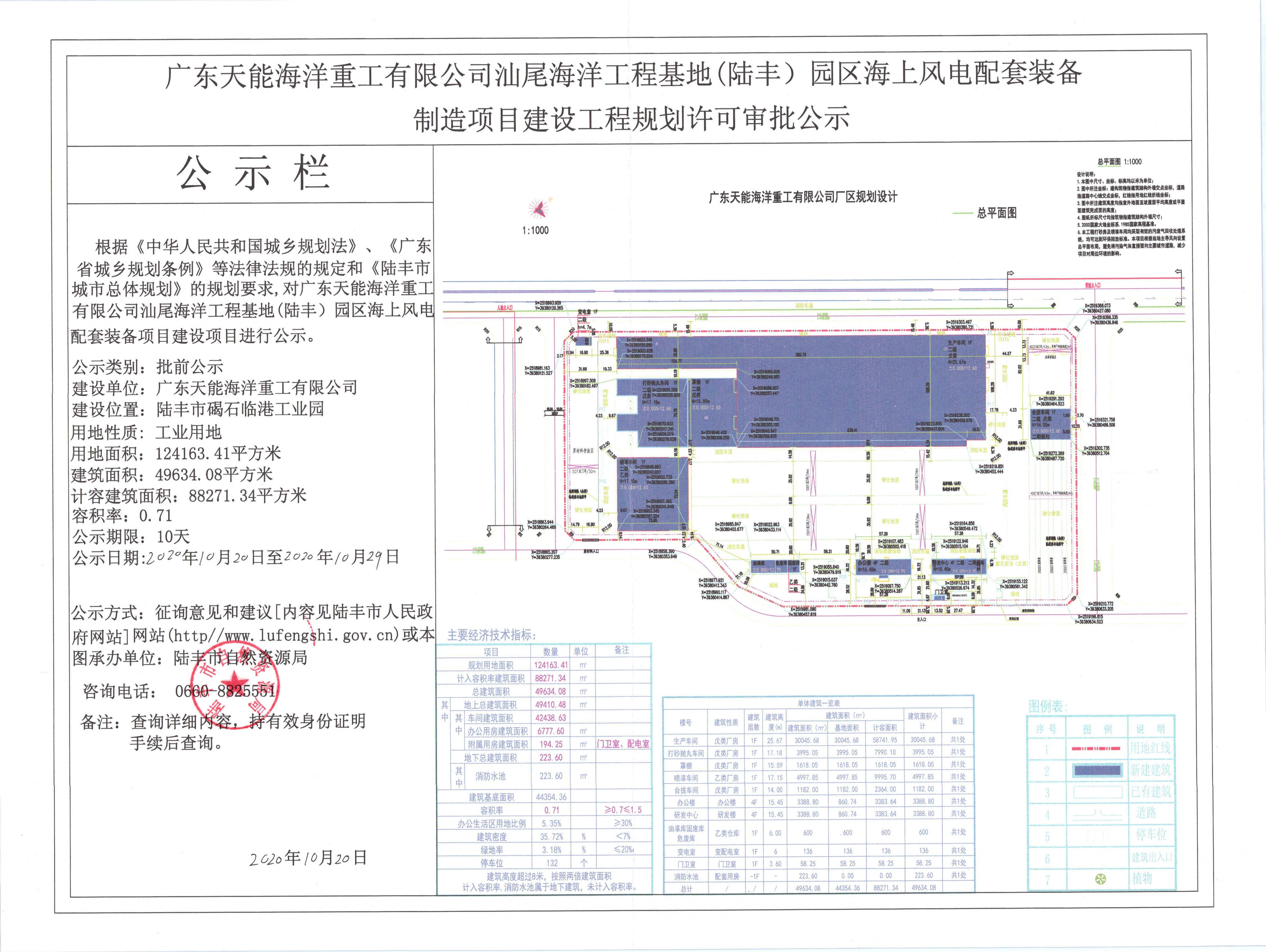 广东天能海洋重工有限公司汕尾海洋工程基地(陆丰)园区海上风电配套装备制造项目建设工程规划许可审批公示