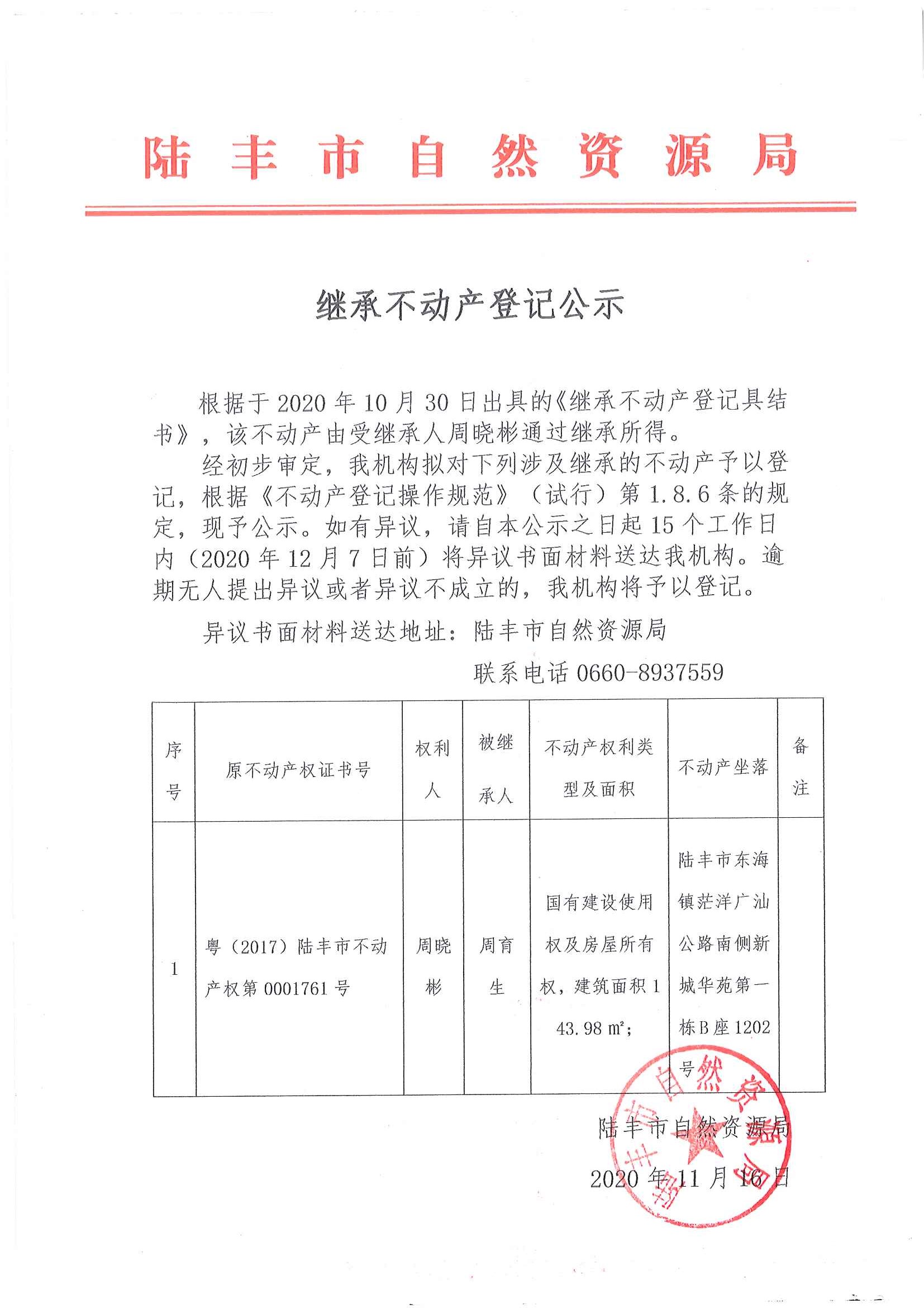 继承不动产登记公示(周晓彬)