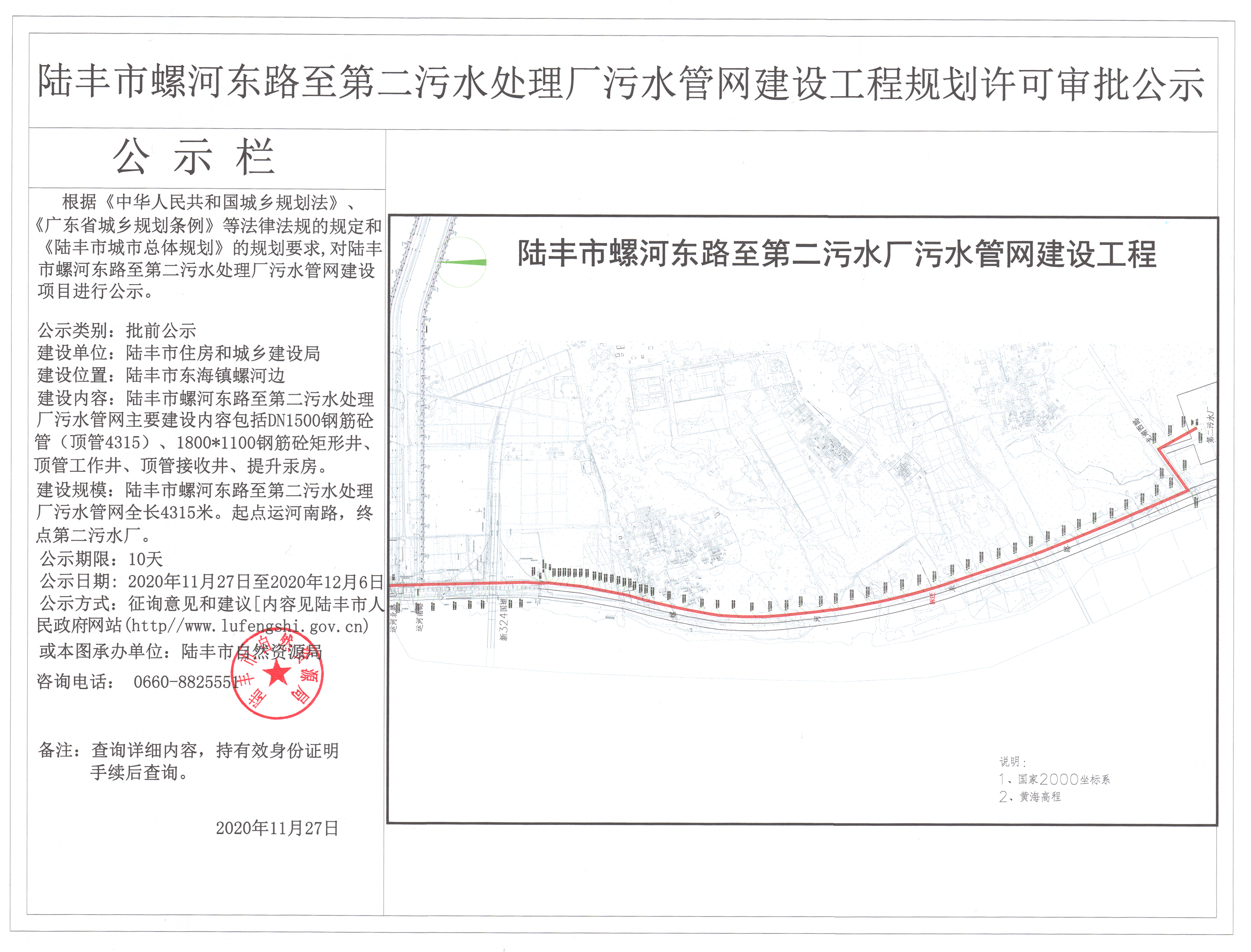 苹果直播 螺河东路至第二污水处理厂污水管网建设工程规划许可审批公示