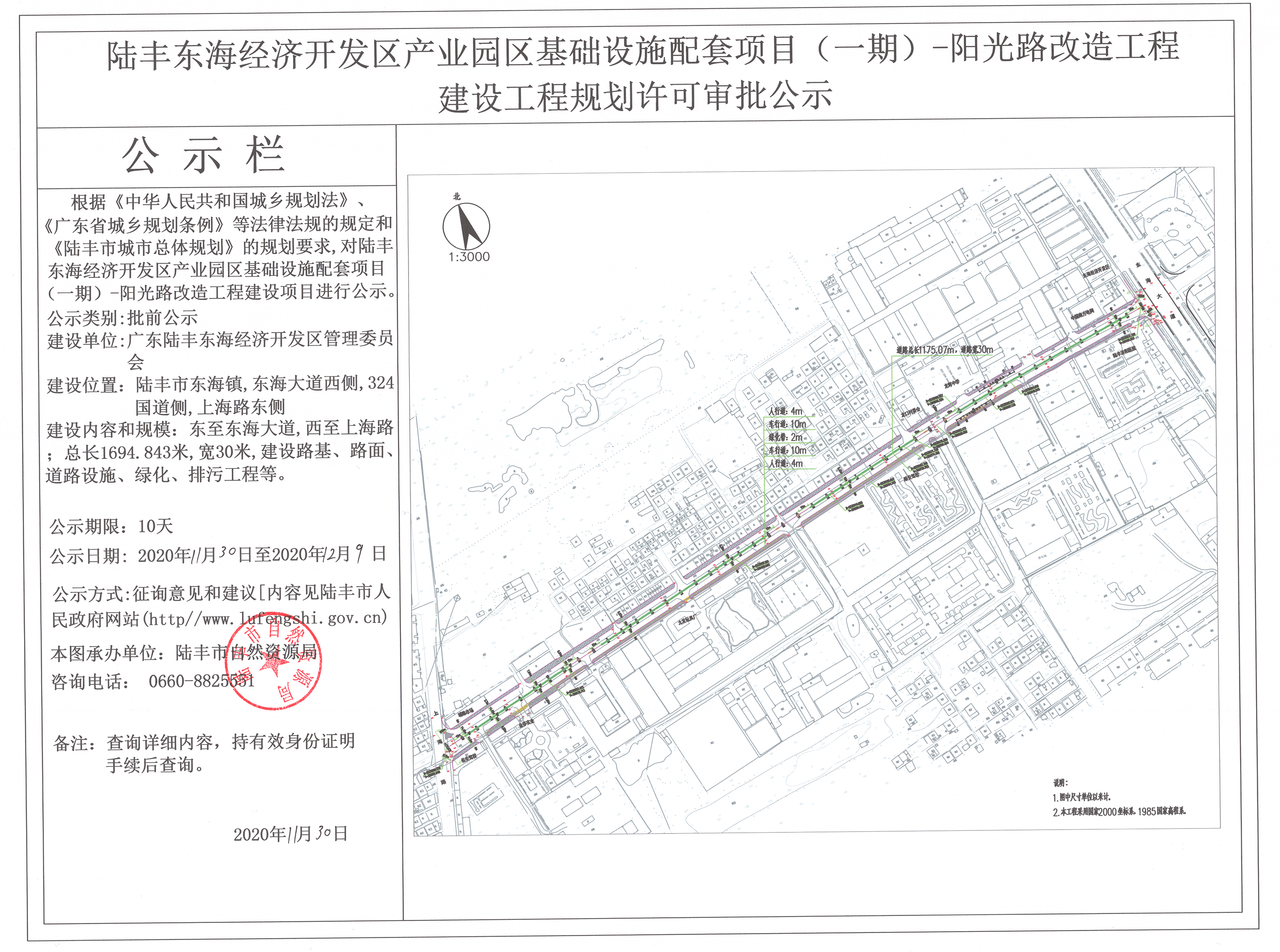 陆丰东海经济开发区产业园区基础设施配套项目(一期)-阳光路改造工程建设工程规划许可审批公示