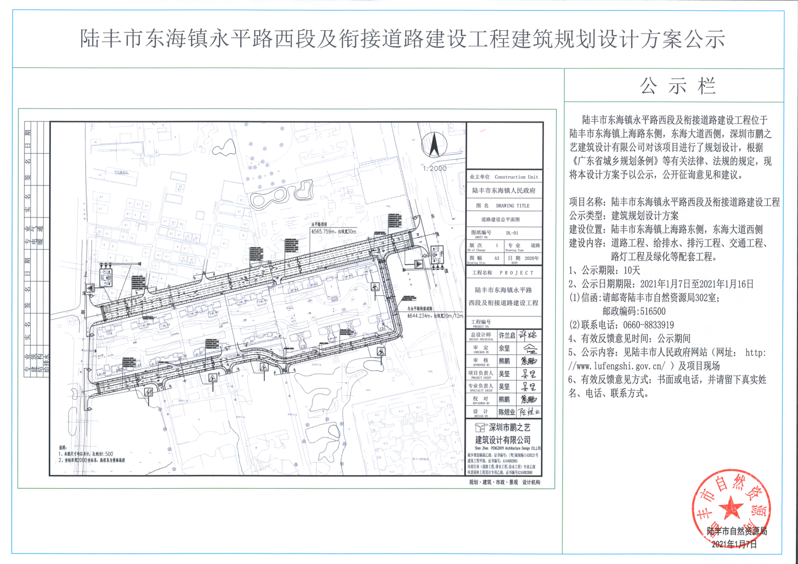 苹果直播 东海镇永平路西段及衔接道路建设工程建筑规划设计方案公示