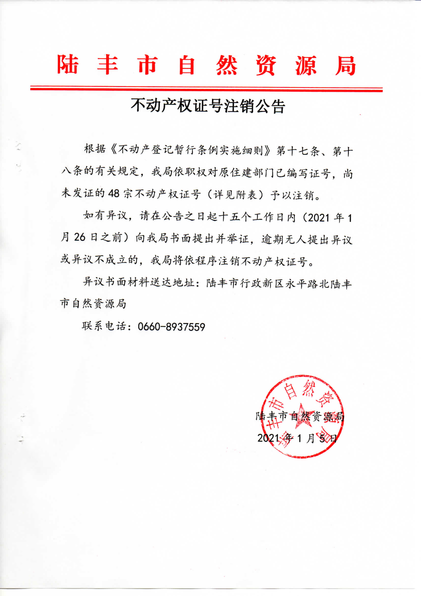 不动产权证号注销公告