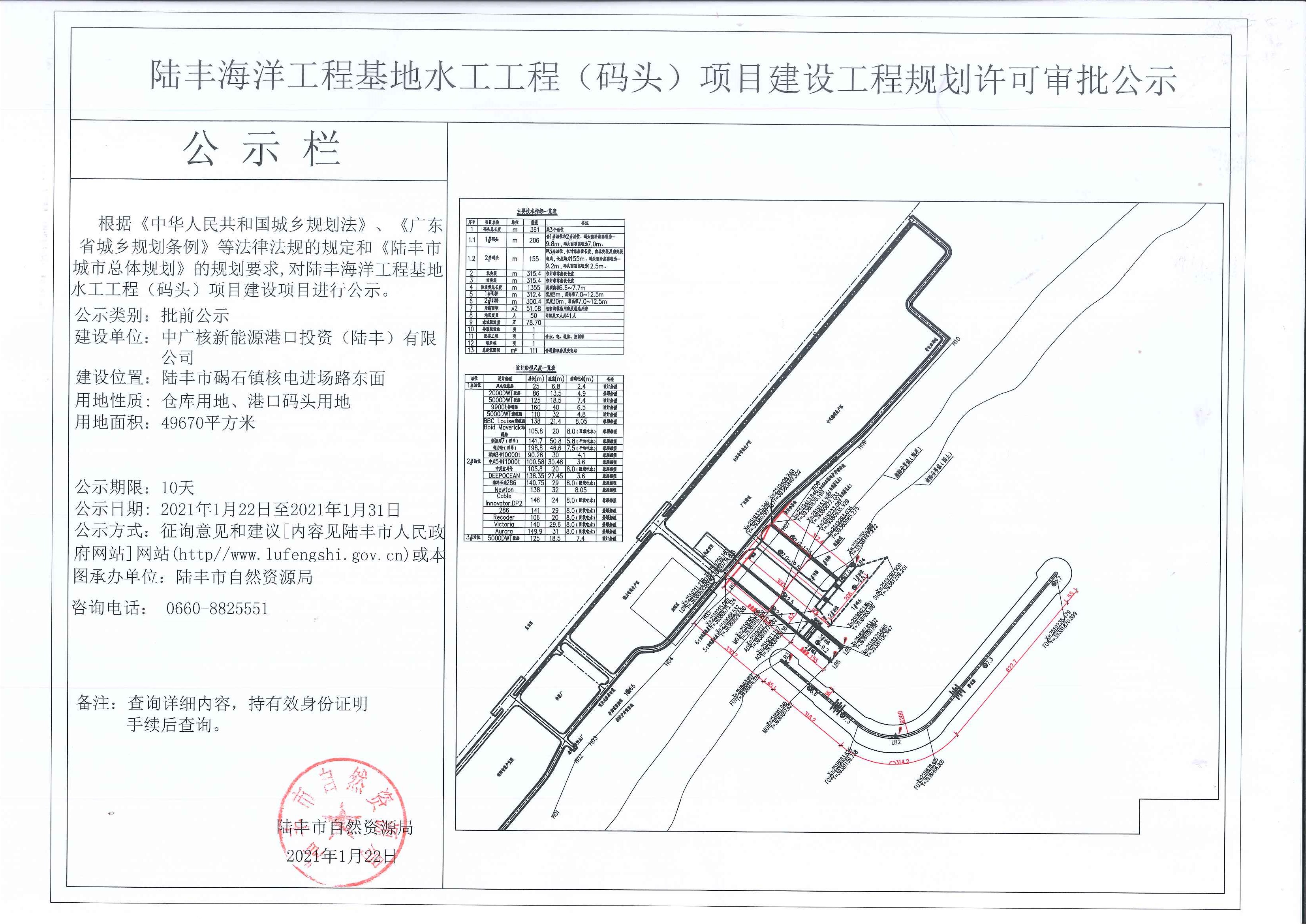 陆丰海洋工程基地水工工程(码头)项目建设工程规划许可审批公示