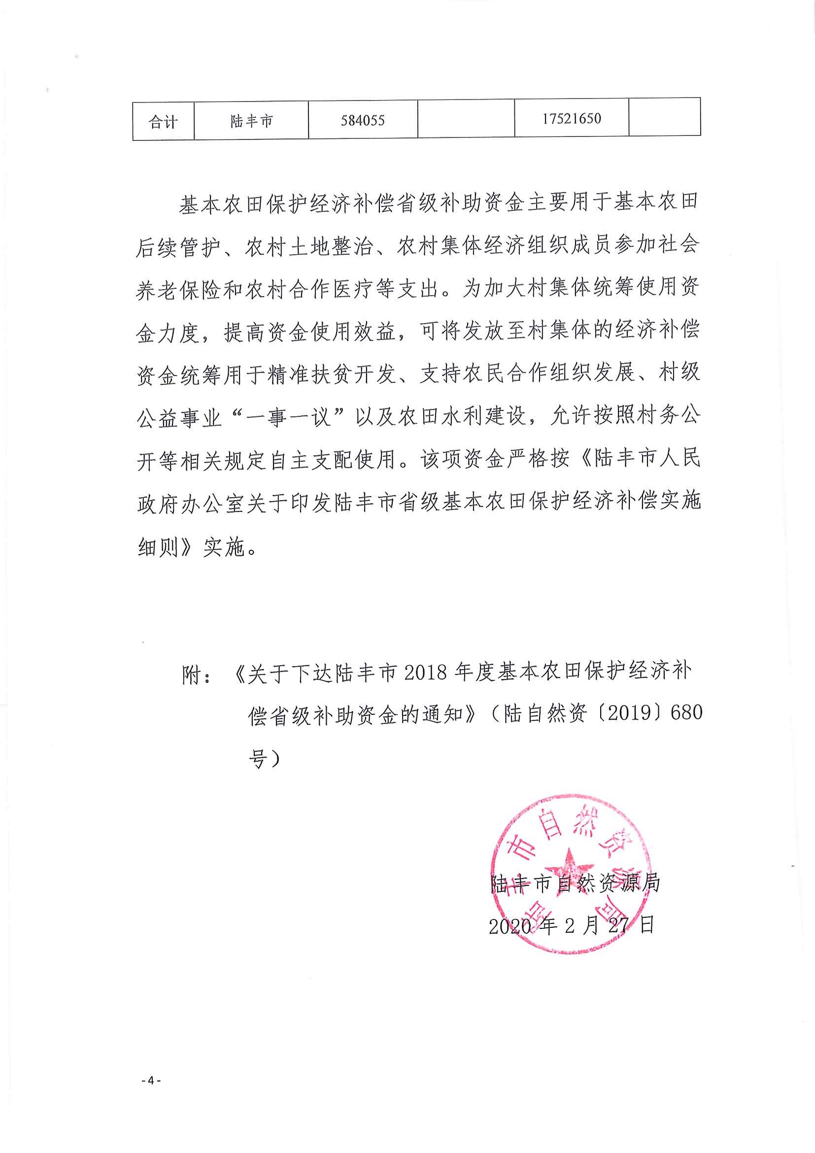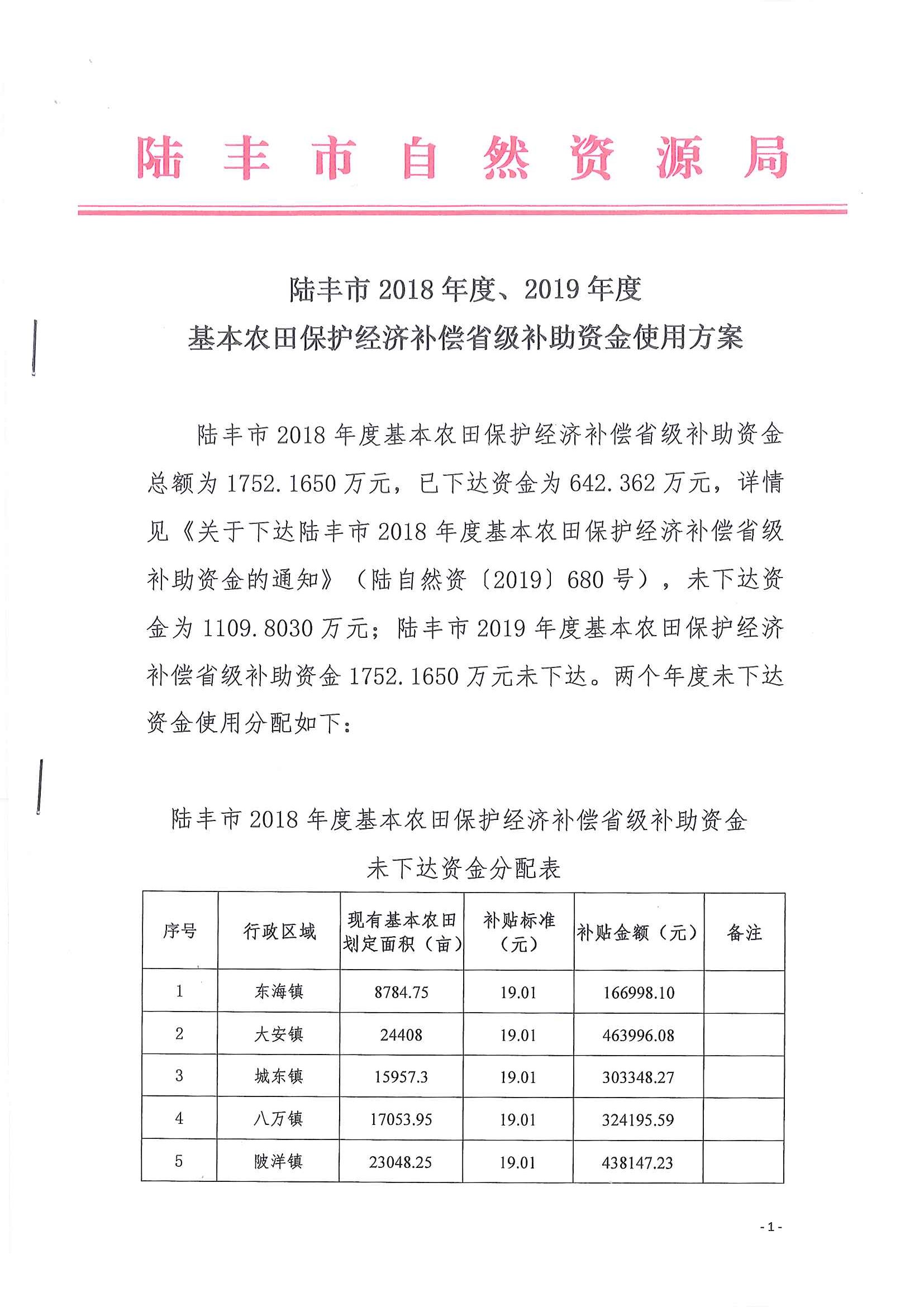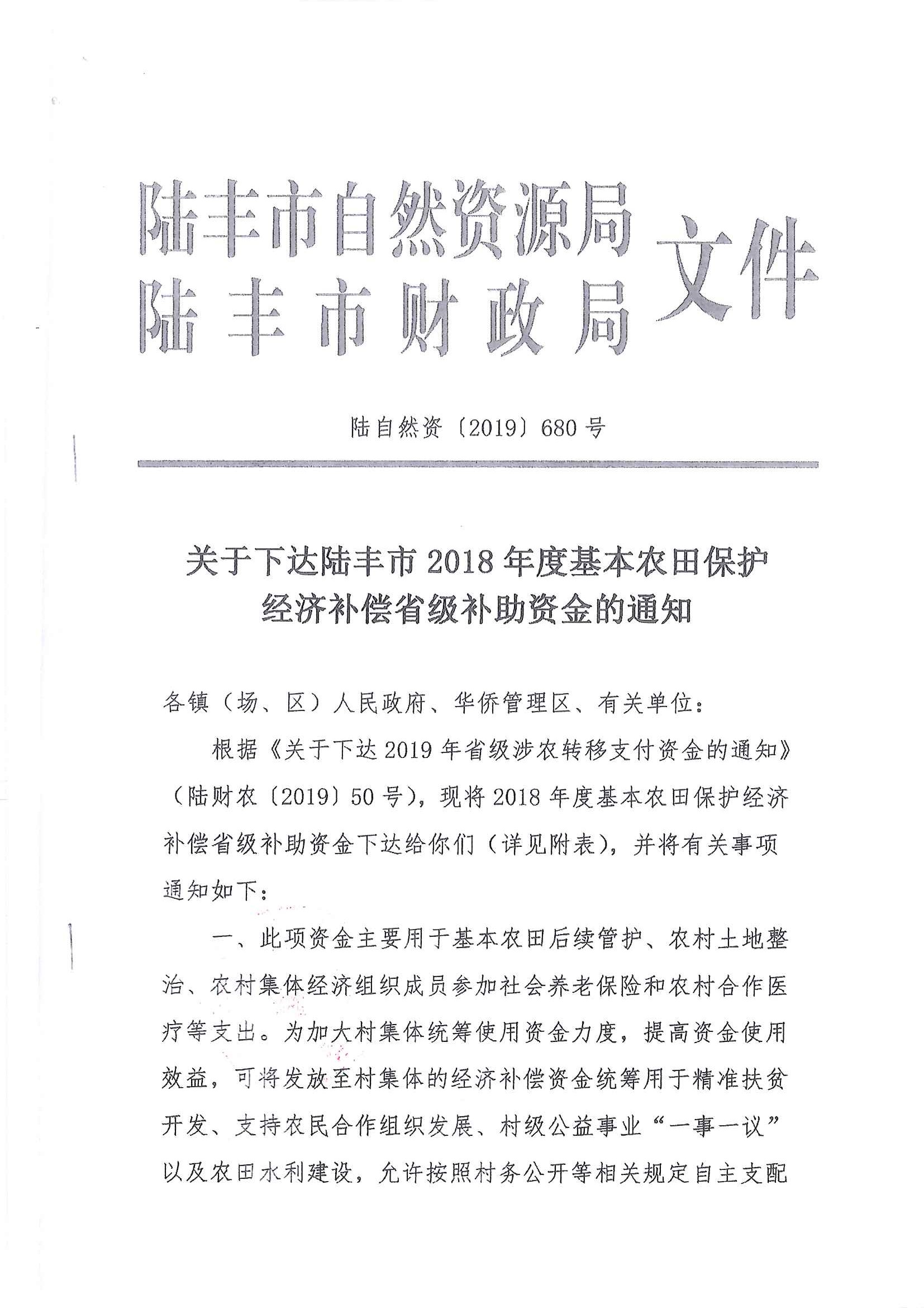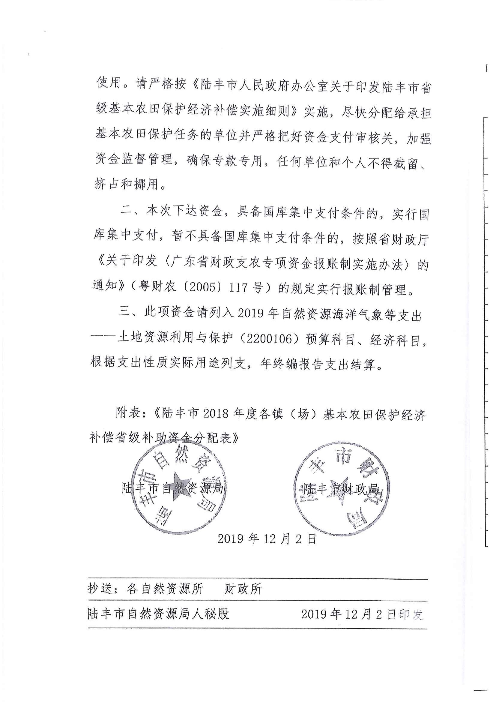 苹果直播 2018年度、2019年度基本农田保护经济补偿省级补助资金使用方案