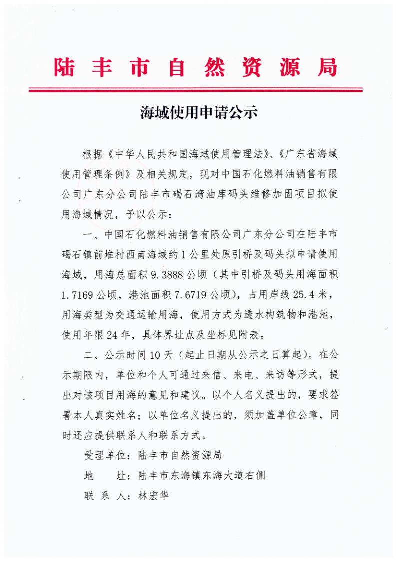 海域使用申请公示