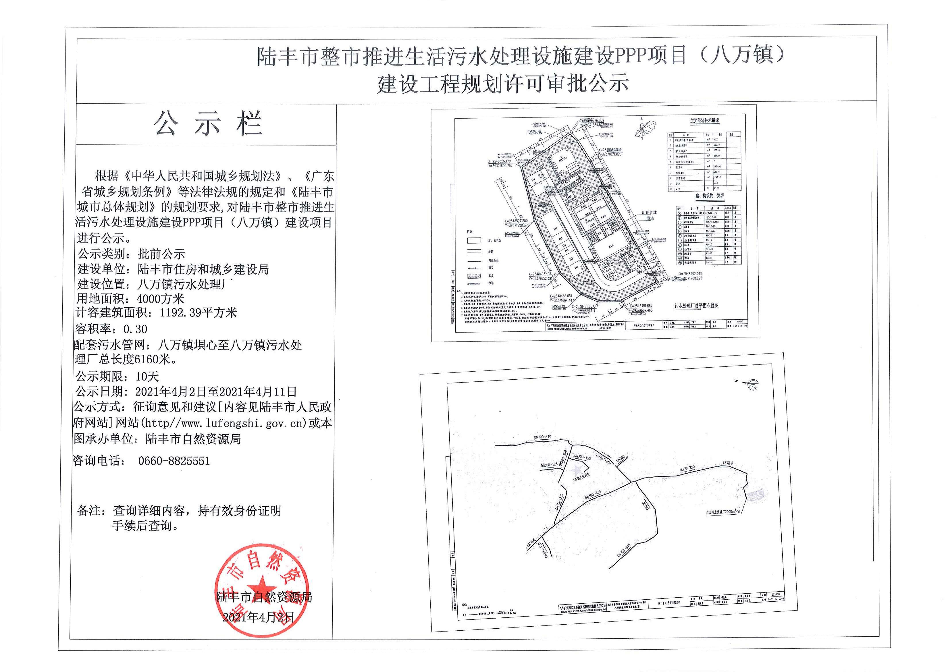 苹果直播 整市推进生活污水处理设施建设PPP项目(八万镇)建设工作规划许可审批公示
