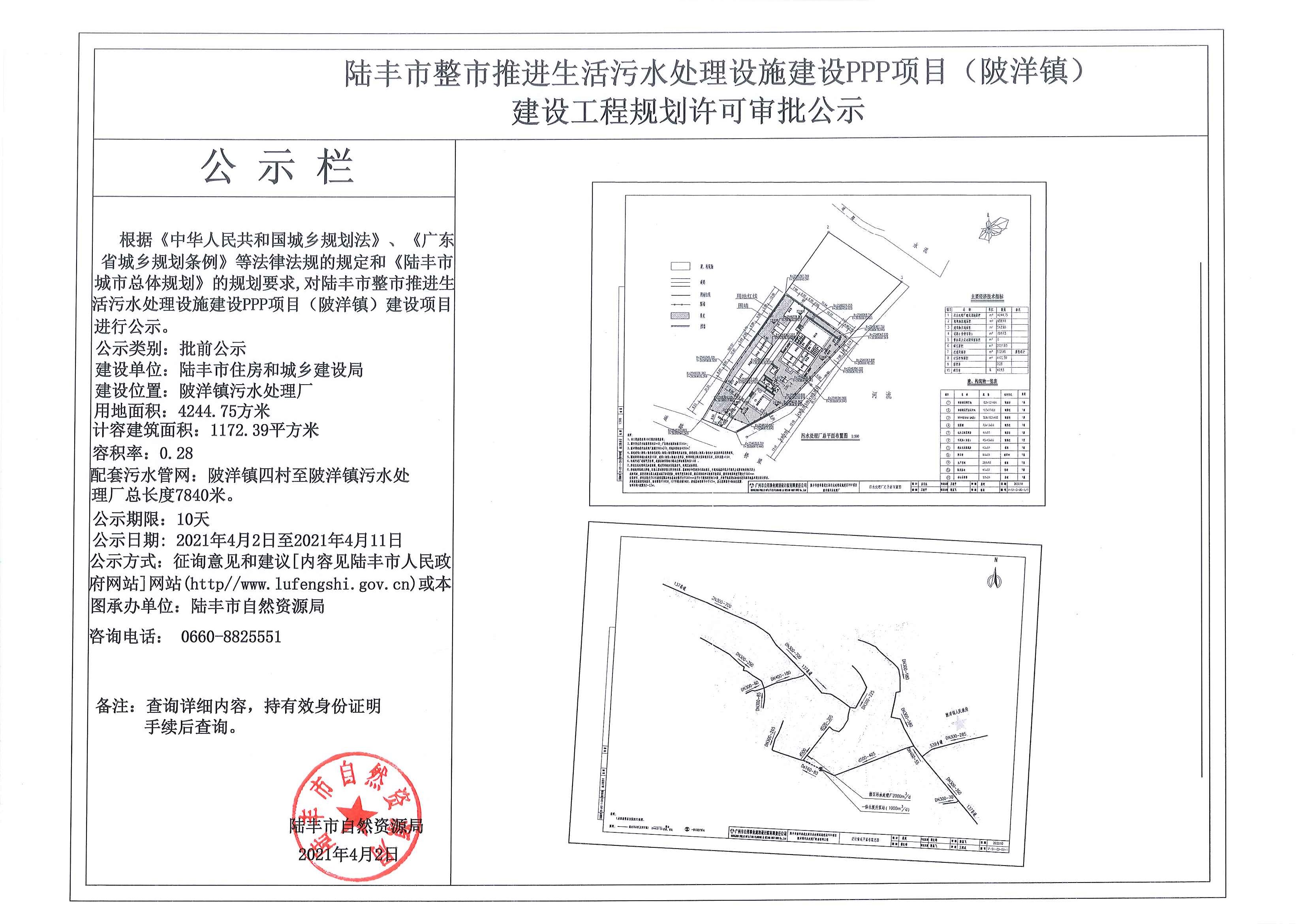 苹果直播 整市推进生活污水处理设施建设PPP项目(陂洋镇)建设工作规划许可审批公示