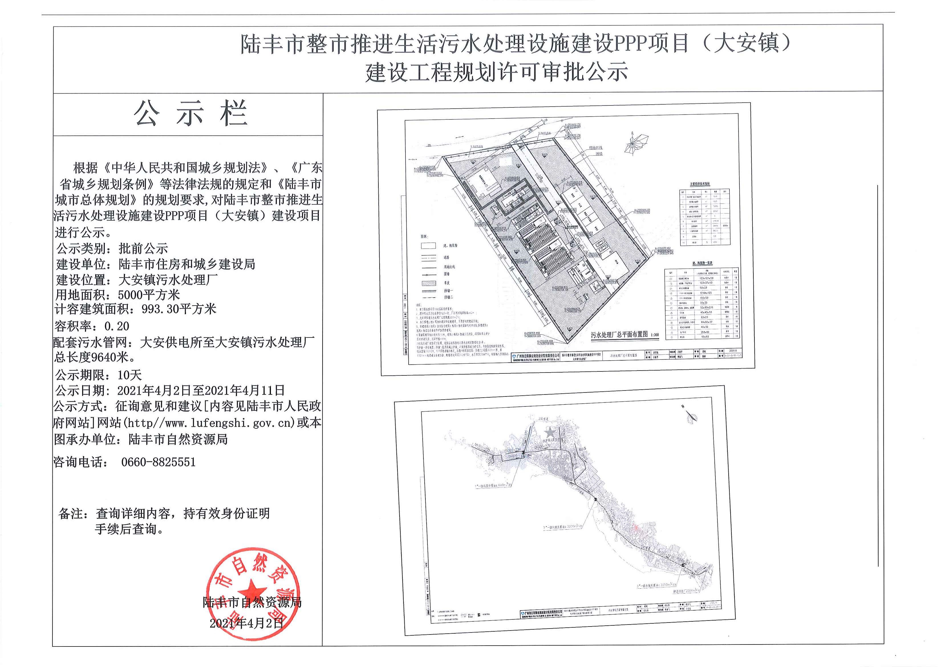 苹果直播 整市推进生活污水处理设施建设PPP项目(大安镇)建设工作规划许可审批公示