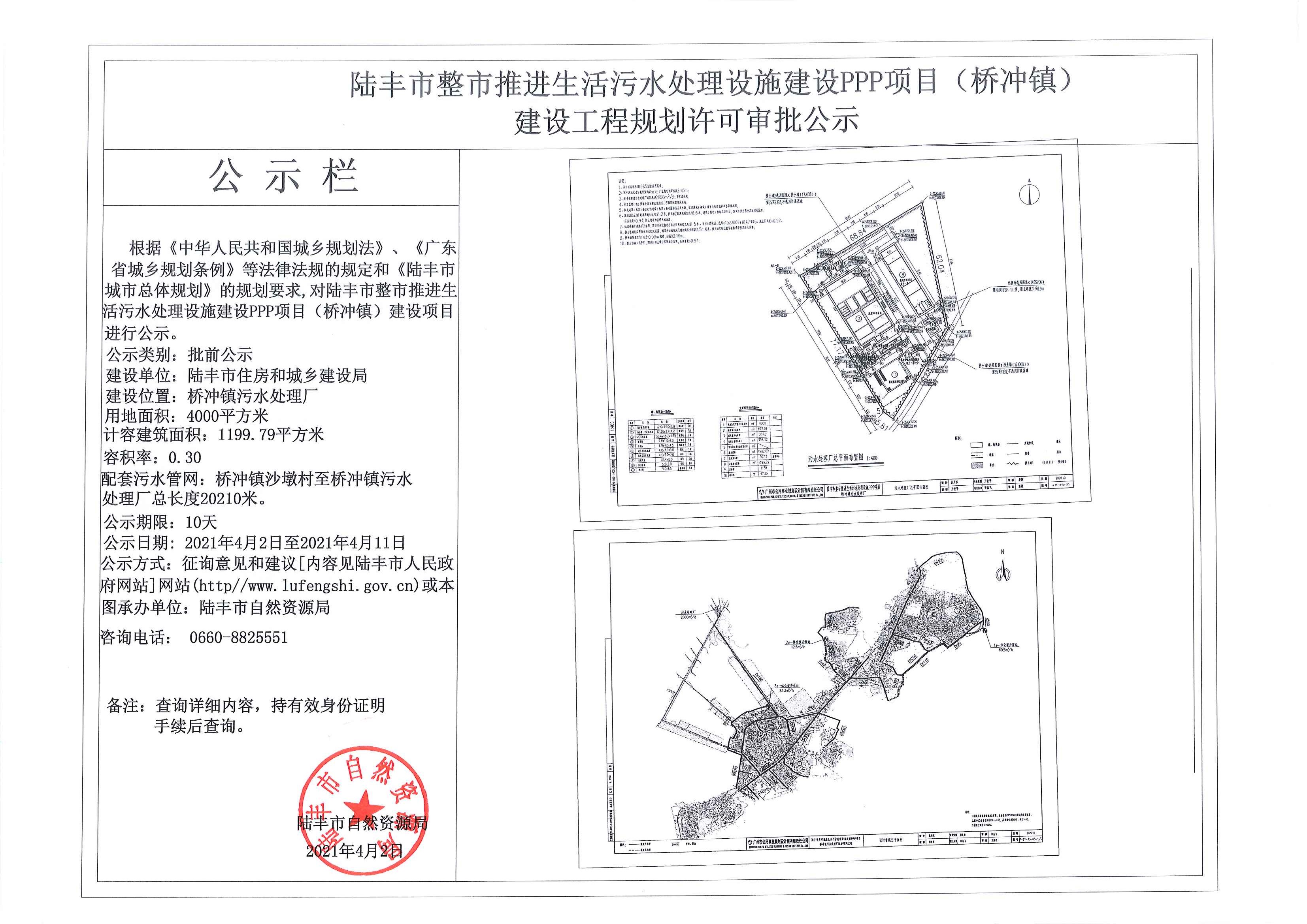 苹果直播 整市推进生活污水处理设施建设PPP项目(桥冲镇)建设工作规划许可审批公示
