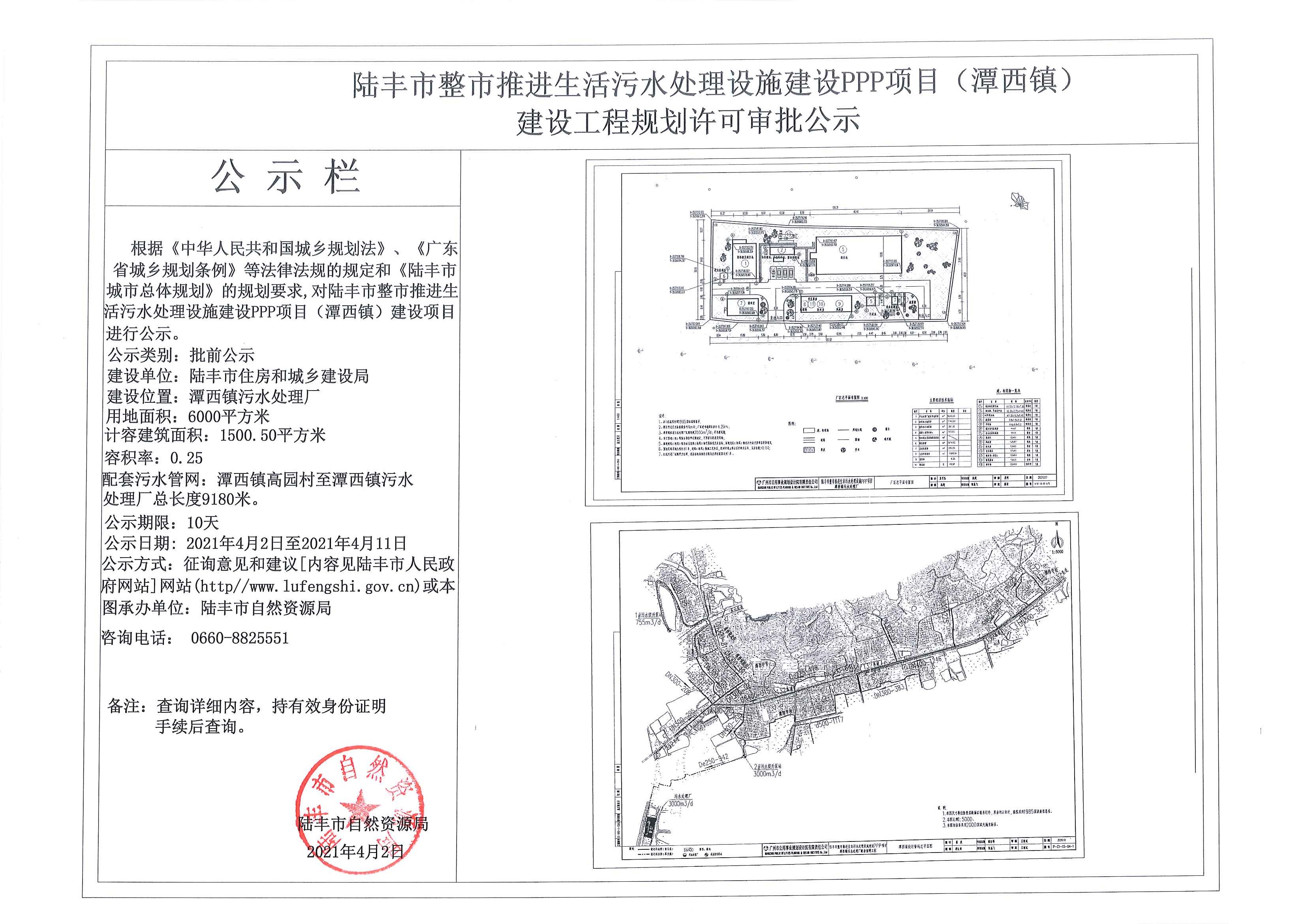 苹果直播 整市推进生活污水处理设施建设PPP项目(潭西镇)建设工作规划许可审批公示