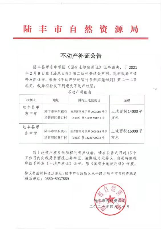 不动产补证公告
