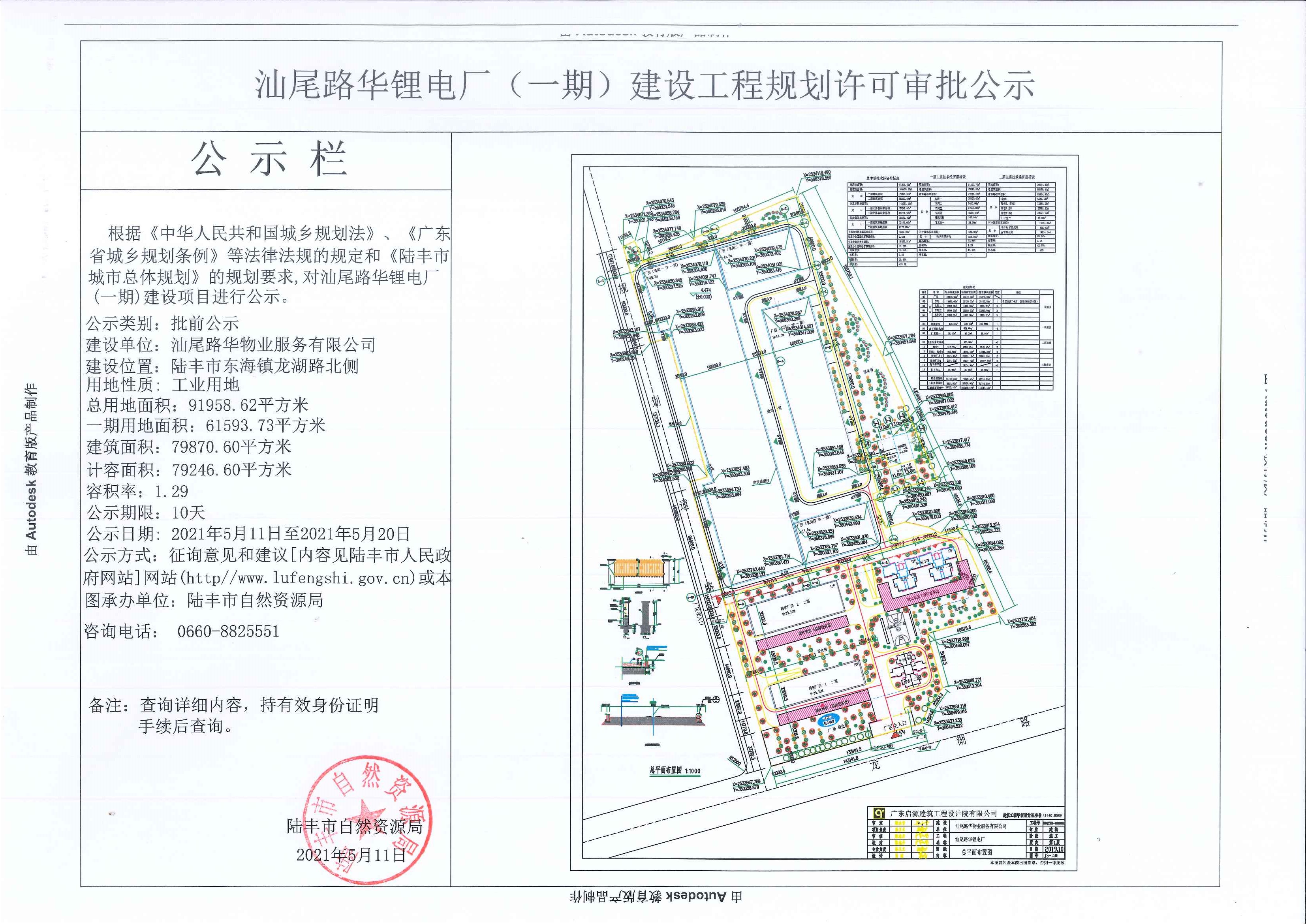 汕尾路华锂电厂(一期)建设工程规划许可审批公示